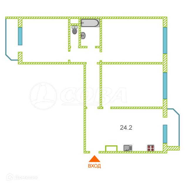 3-комнатная квартира, 90.6 м2, этаж 13 / 14, на продажу в Тюмени, Кремлёвская улица, 85