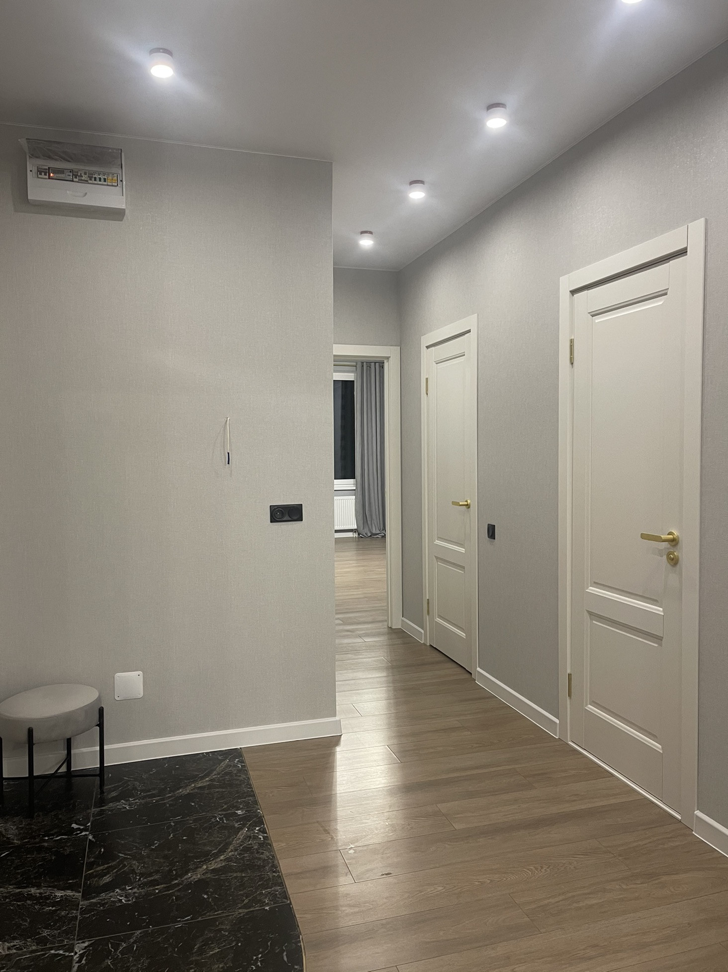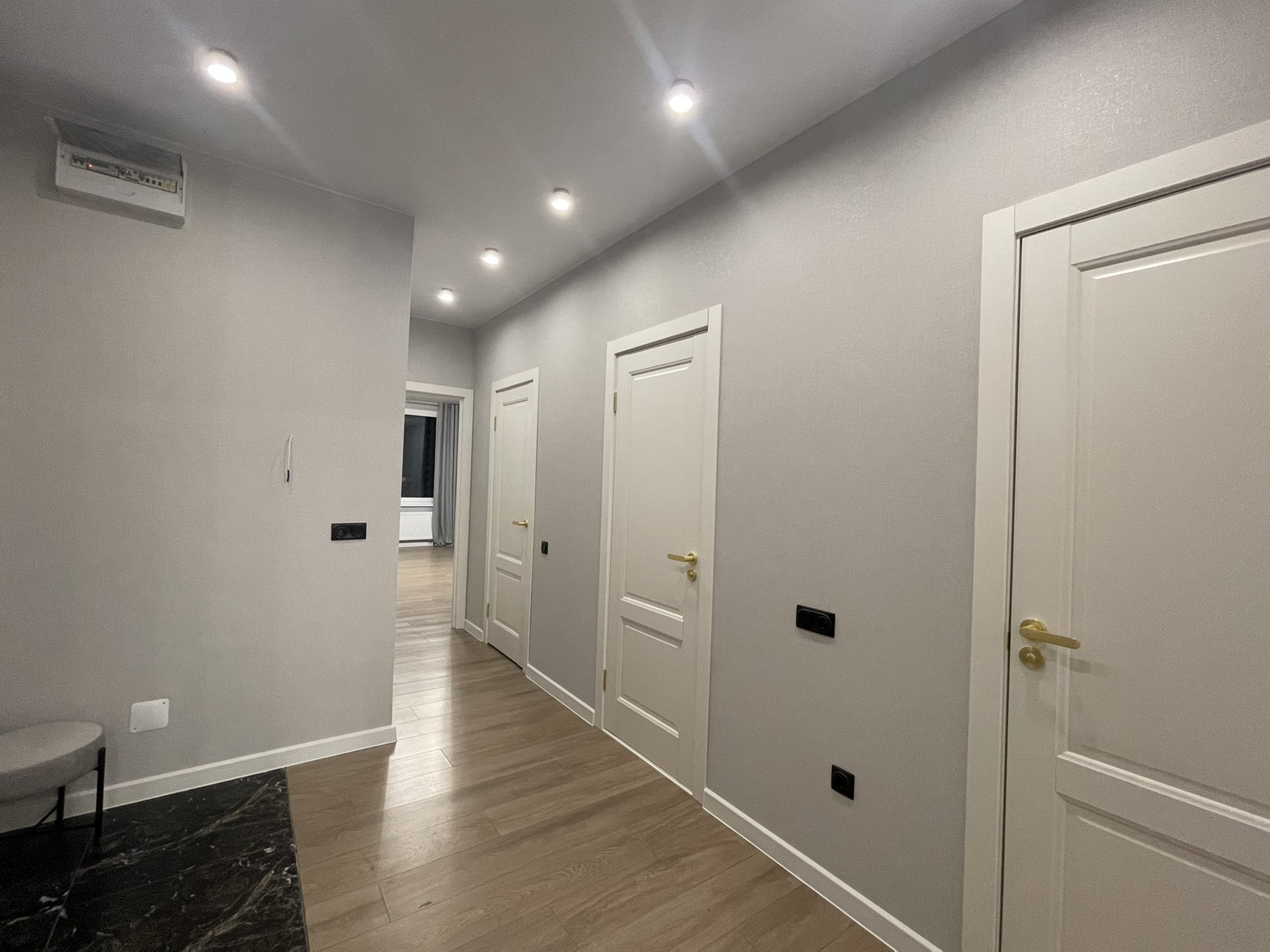 Квартира с современным ремонтом. Хорошая планировка, кухня и комнаты прямоугольной формы, на кухне модно поставить диван. Есть балкон и гардеробная. Рядом есть детский садик, школа.