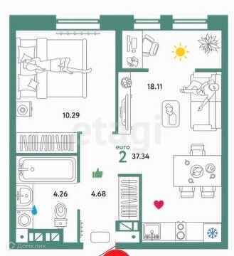 Предлагается к продаже квартира формата 1+ (кухня-гостиная и отдельная спальня) в новом, красивом и гармоничном жилом квартале «Колумб».