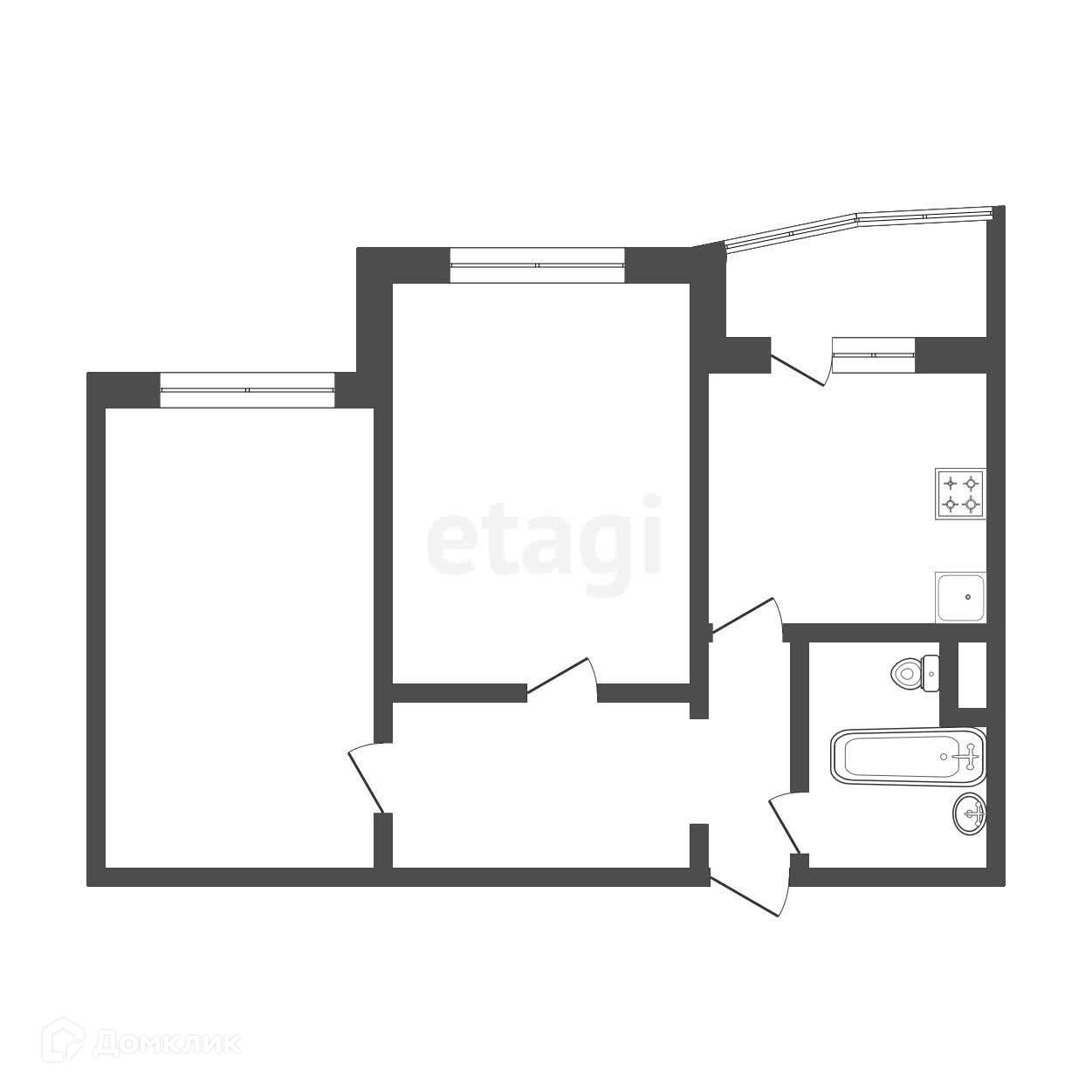 Площадь гостиной составляет 24 кв. м., плошадь кухни -9.2 кв. м., площадь спальни 19 кв. м. Планировка функциональная, отлично подойдет для проживания семьи, выход на балкон из кухни.