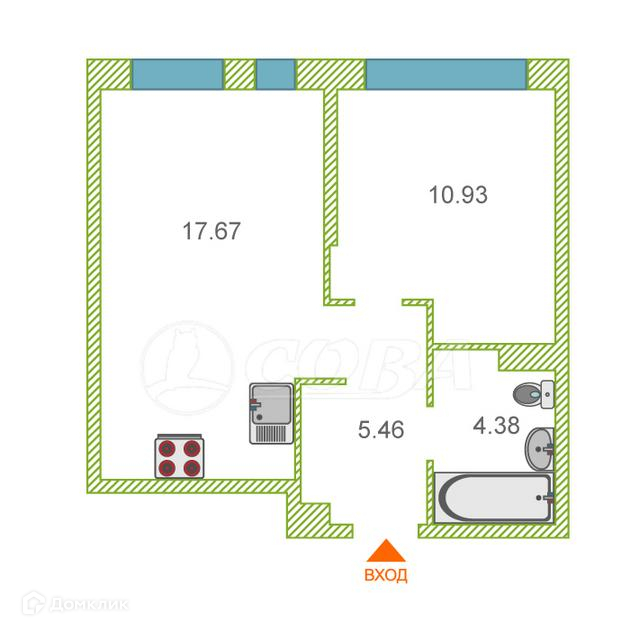 Общая площадь 38.4 м2
