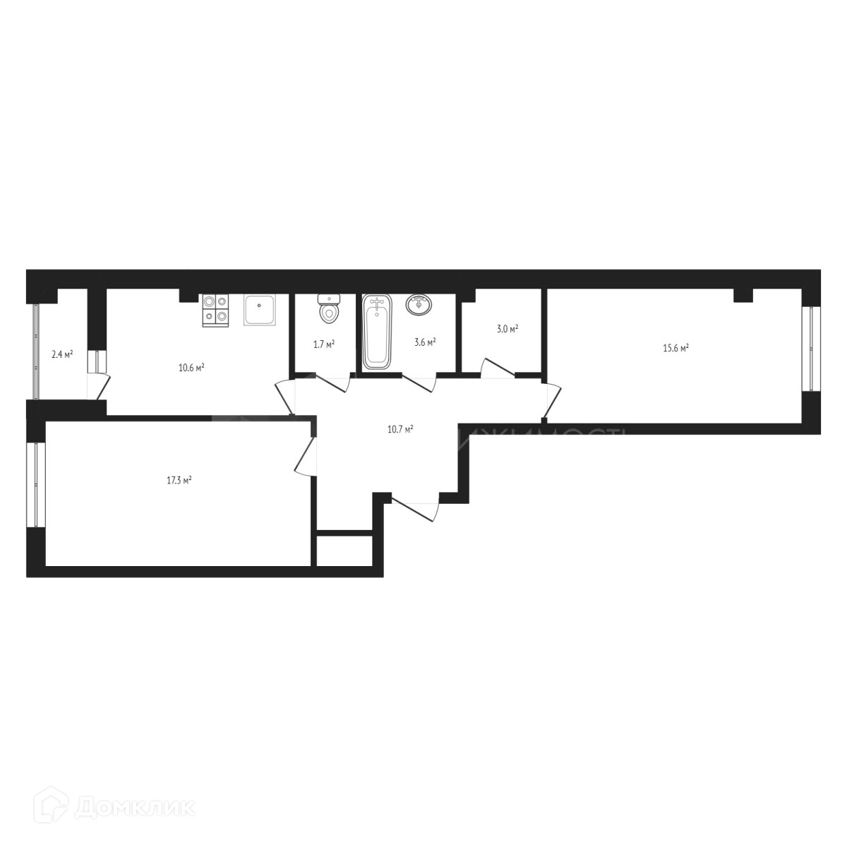 Комнаты 15.9 кв.м и 17.3 кв.м разведены на две разные стороны, что даёт обособленность детской комнаты от родительской спальни и возможность спокойно отдохнуть когда дети играют или же наоборот смотреть любимый сериал