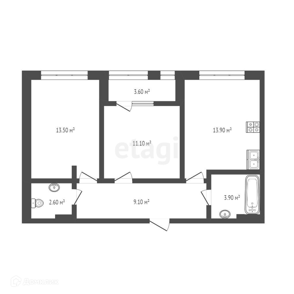 Общая площадь 58.2 м2