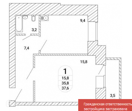 Общая площадь 36 м2
