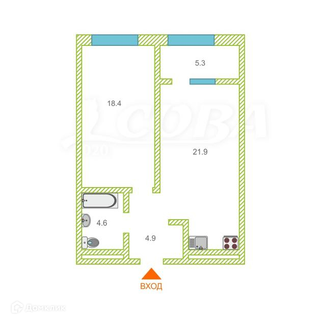 Общая площадь 49.4 м2