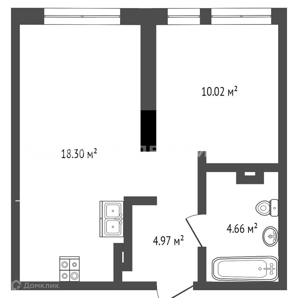 Общая площадь 36.9 м2