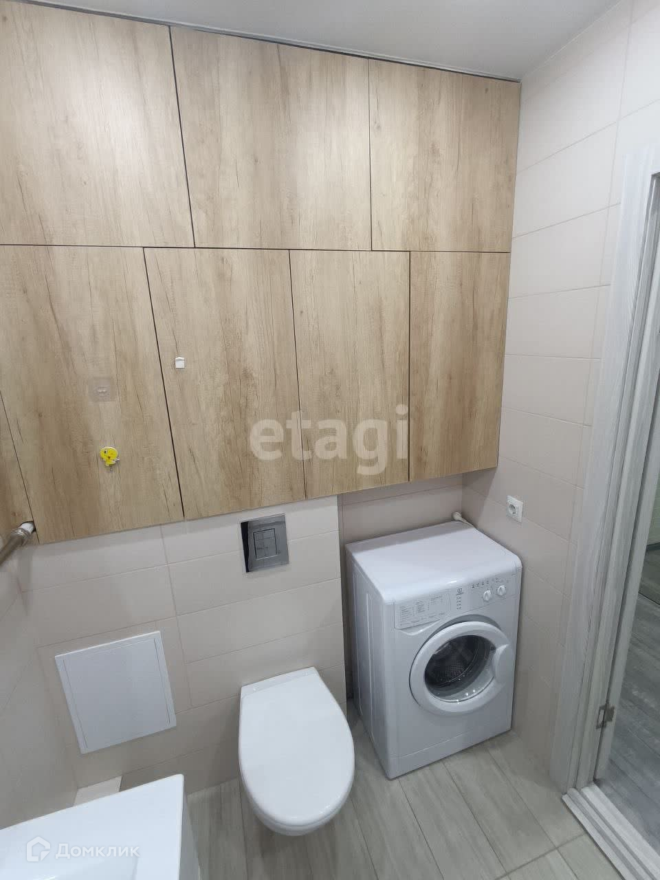 В санузле выполнена отделка стен и пола керамической плиткой. Установлена инсталляция в короб.