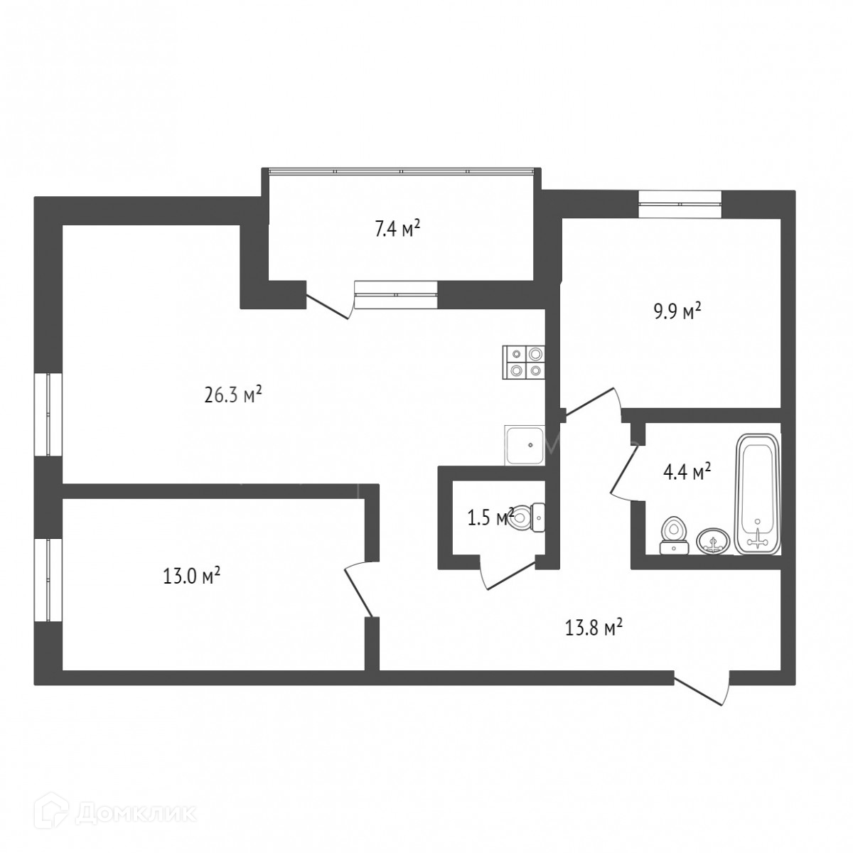 Квартира 2к, площадь 70 м2, комнаты изолированные, кухня-гостинная 26,3 м2, санузел совмещенный и есть гостевой санузел, уютная панорамная лоджия.