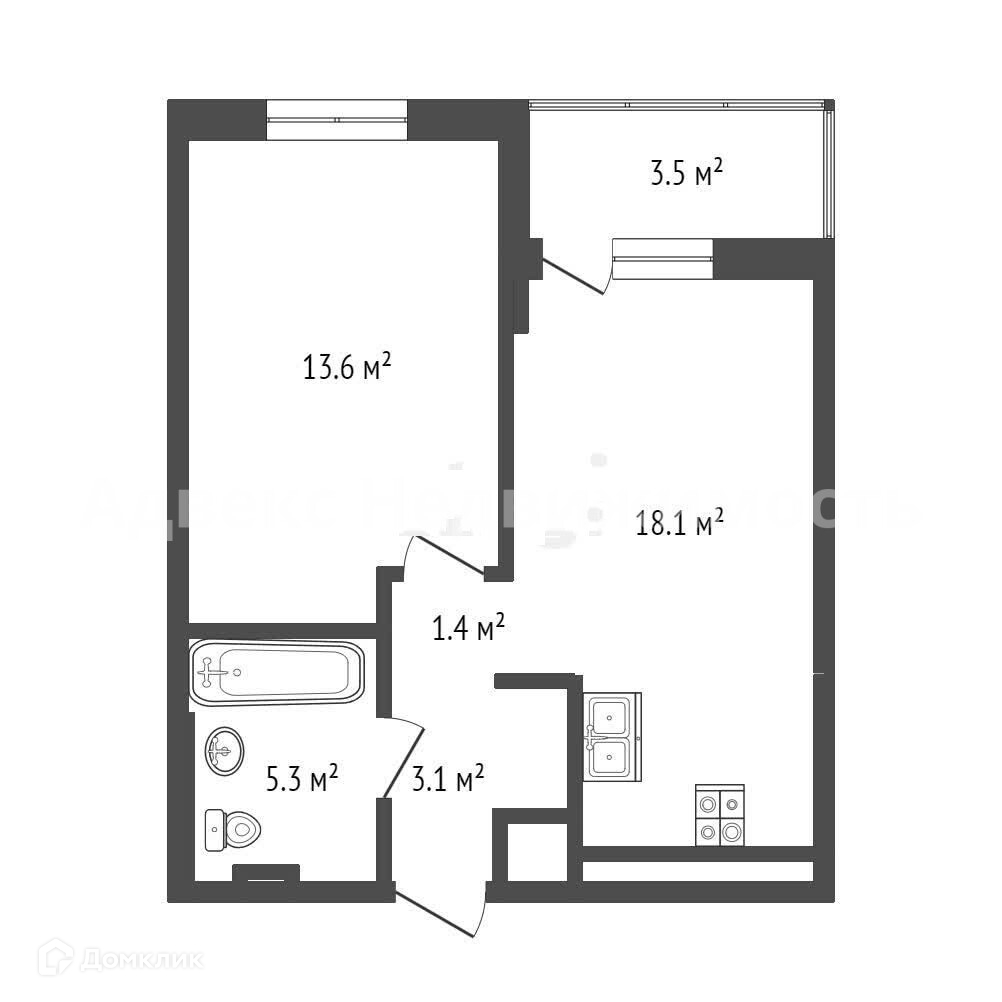 1-комнатная квартира, 42.8 м2, этаж 5 / 14, на продажу в Тюмени, улица Николая Глебова, 3с5