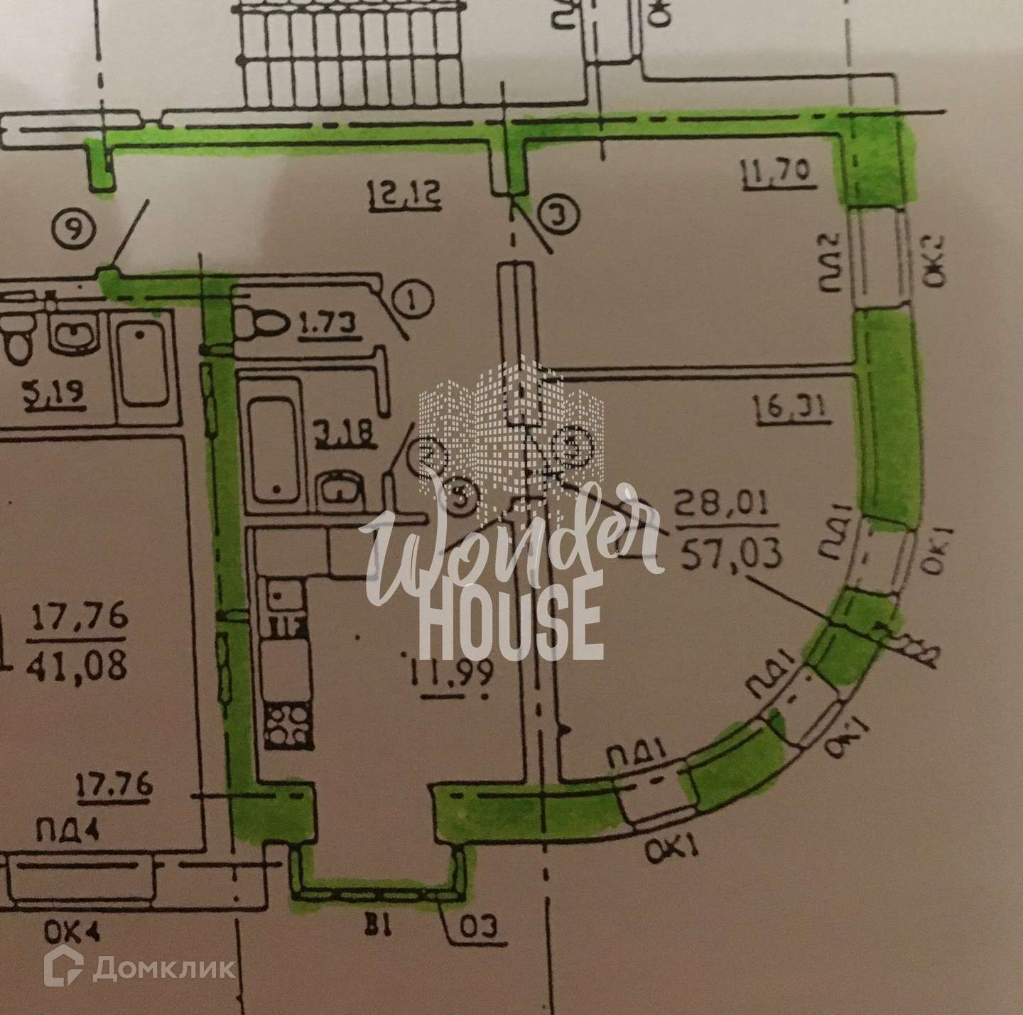 Общая площадь 57 м2