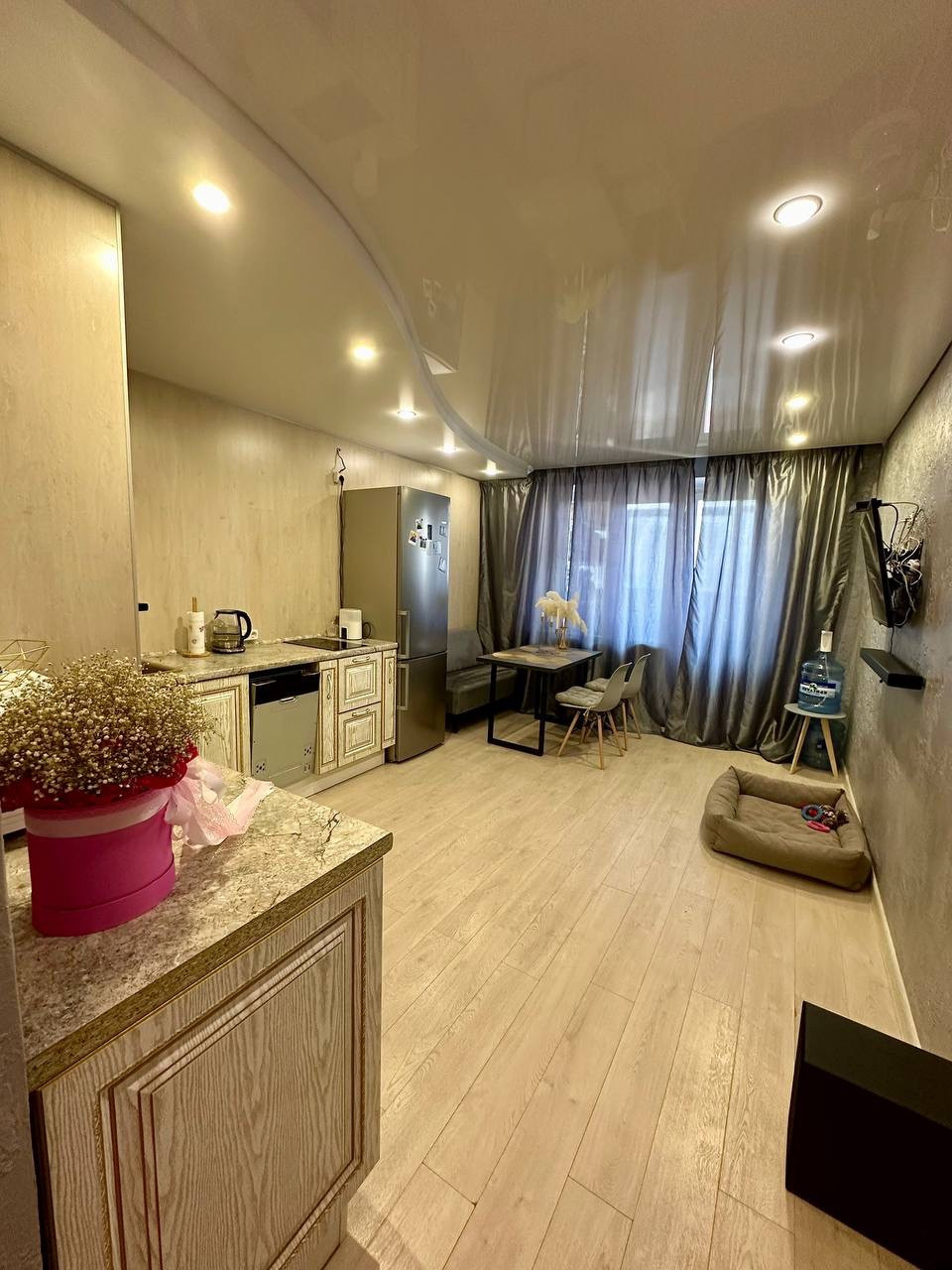 Итак немного о самой квартире: Окна выходят на две стороны. Наличие застекленного балкона. Качественный, современный ремонт, санузел совмещённый в кафеле.