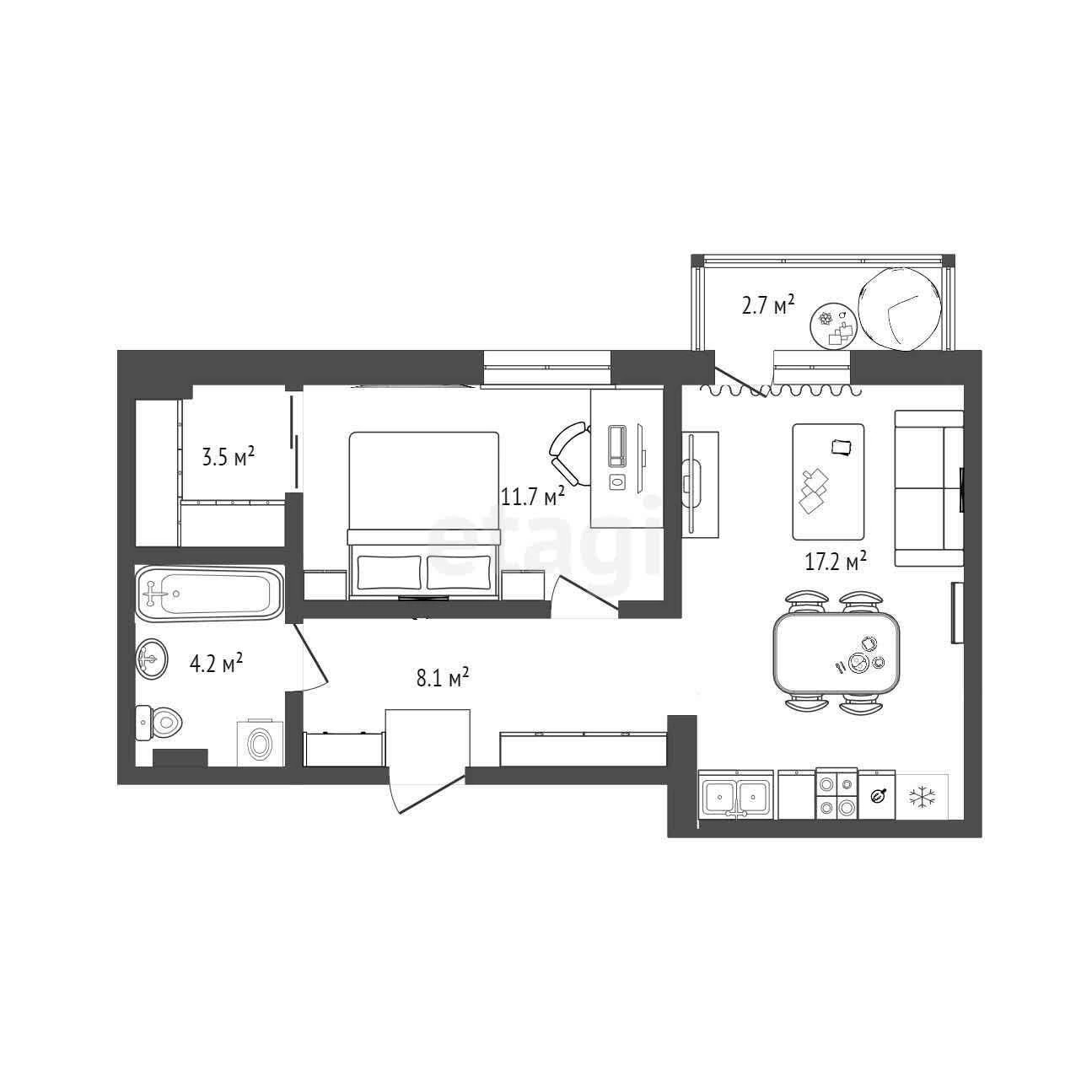 1-комнатная квартира, 44.4 м2, этаж 7 / 8, на продажу в Тюмени, улица Николая Глебова, 3
