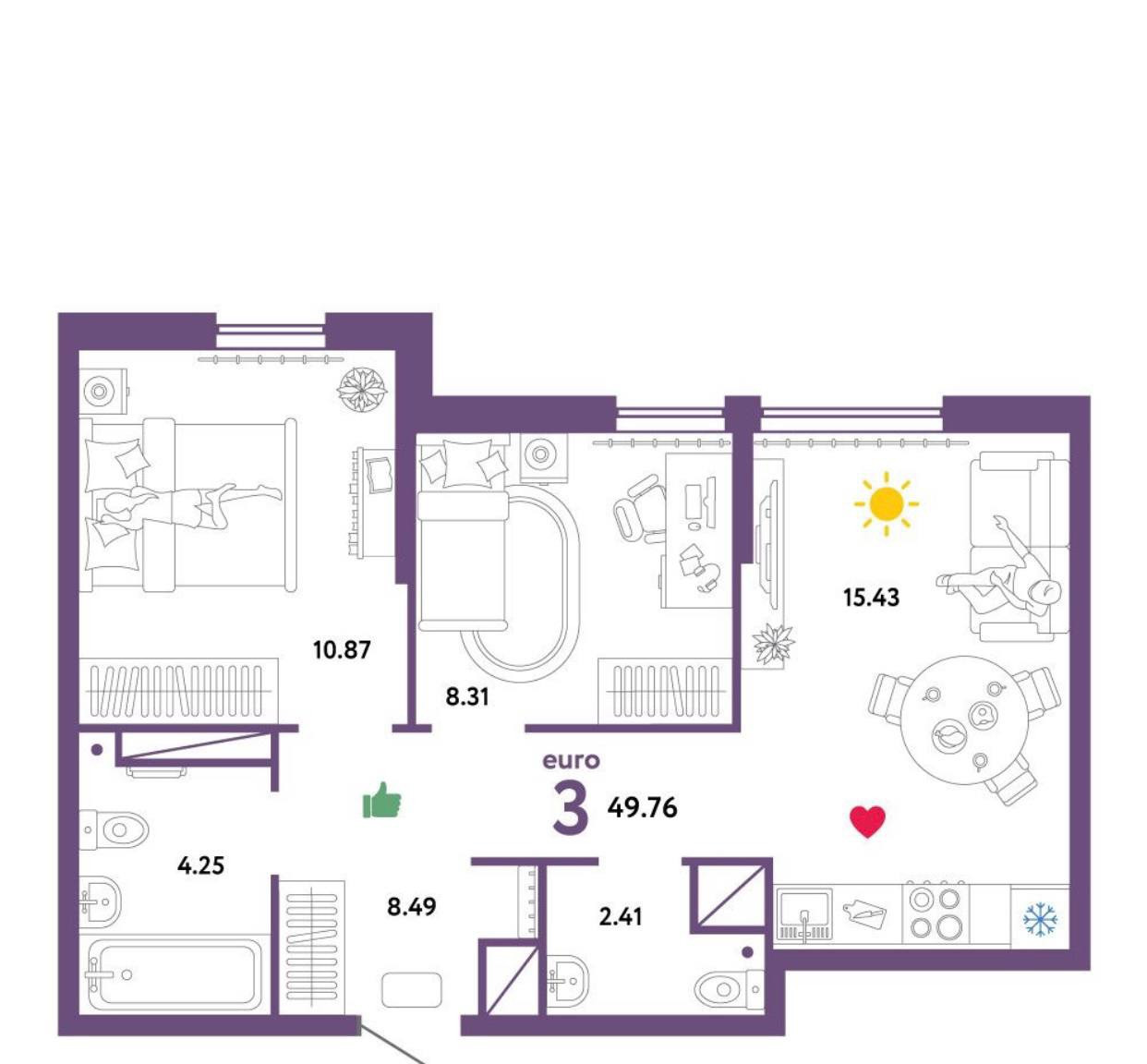 Общая площадь 49.9 м2