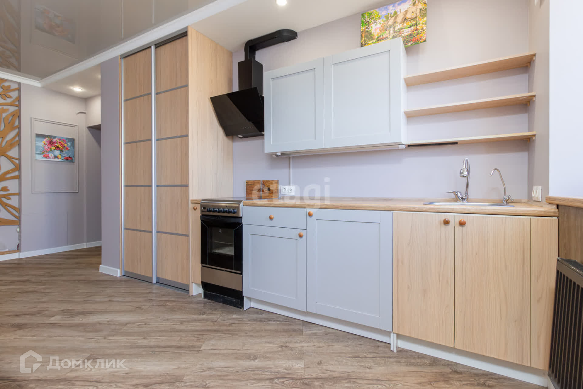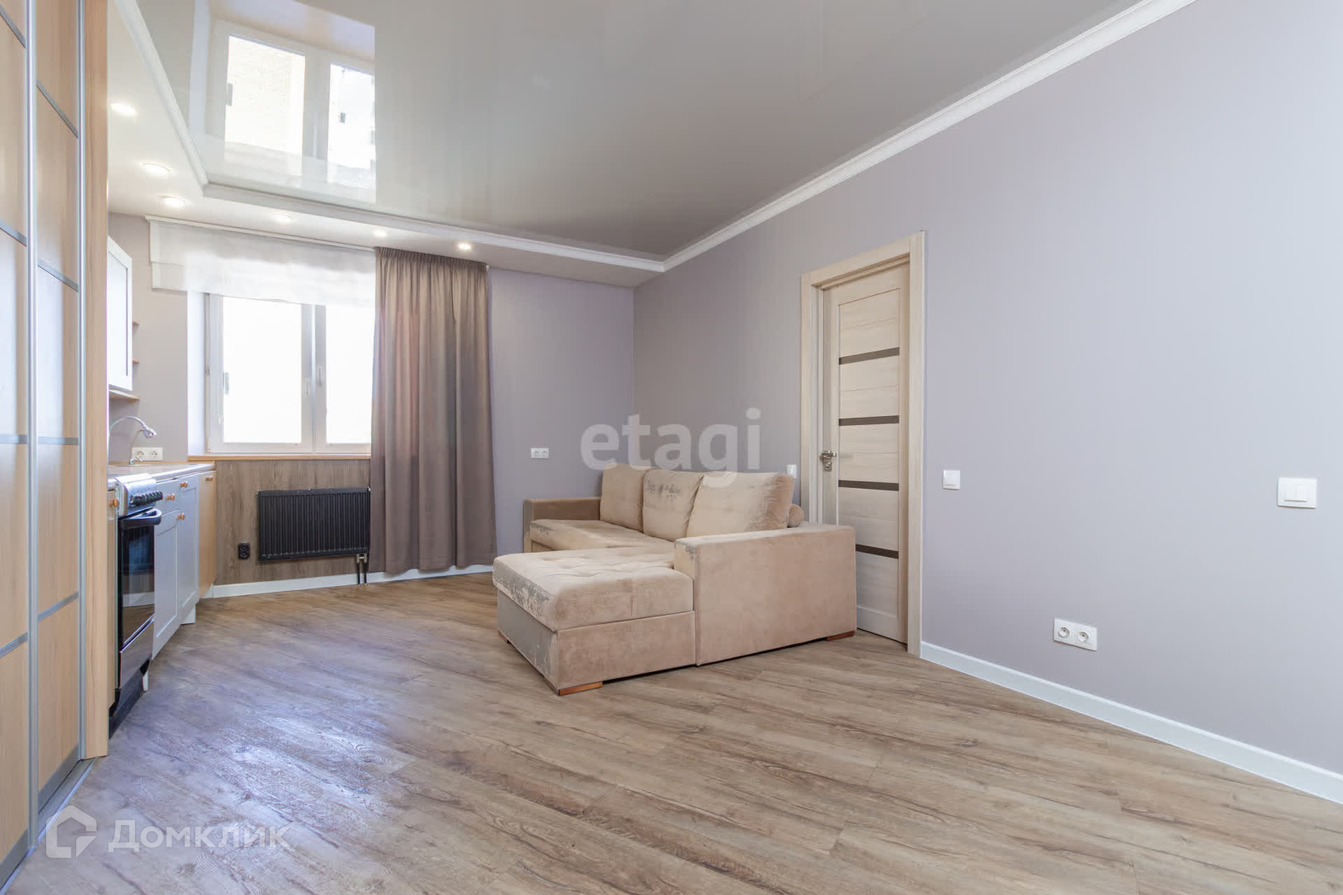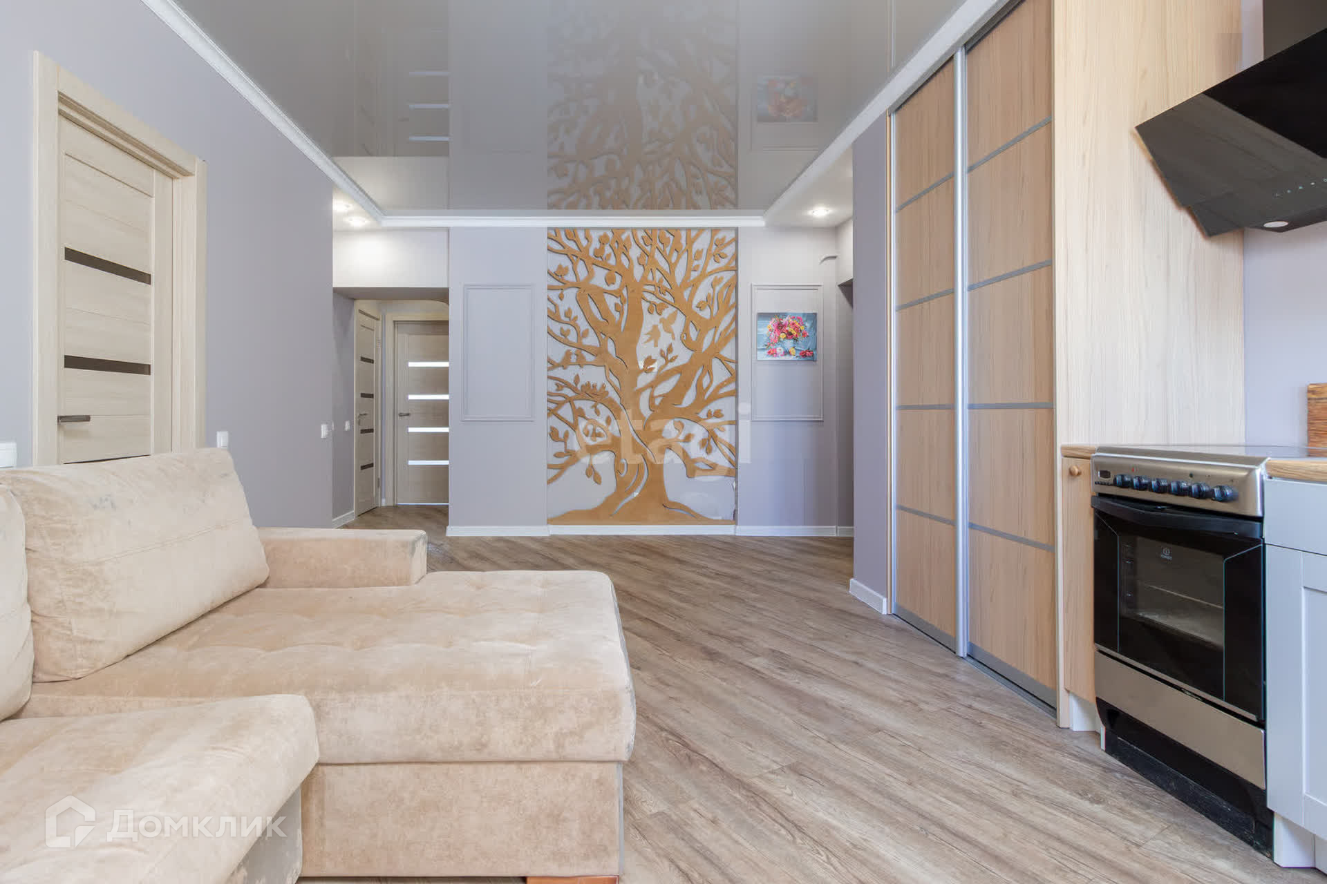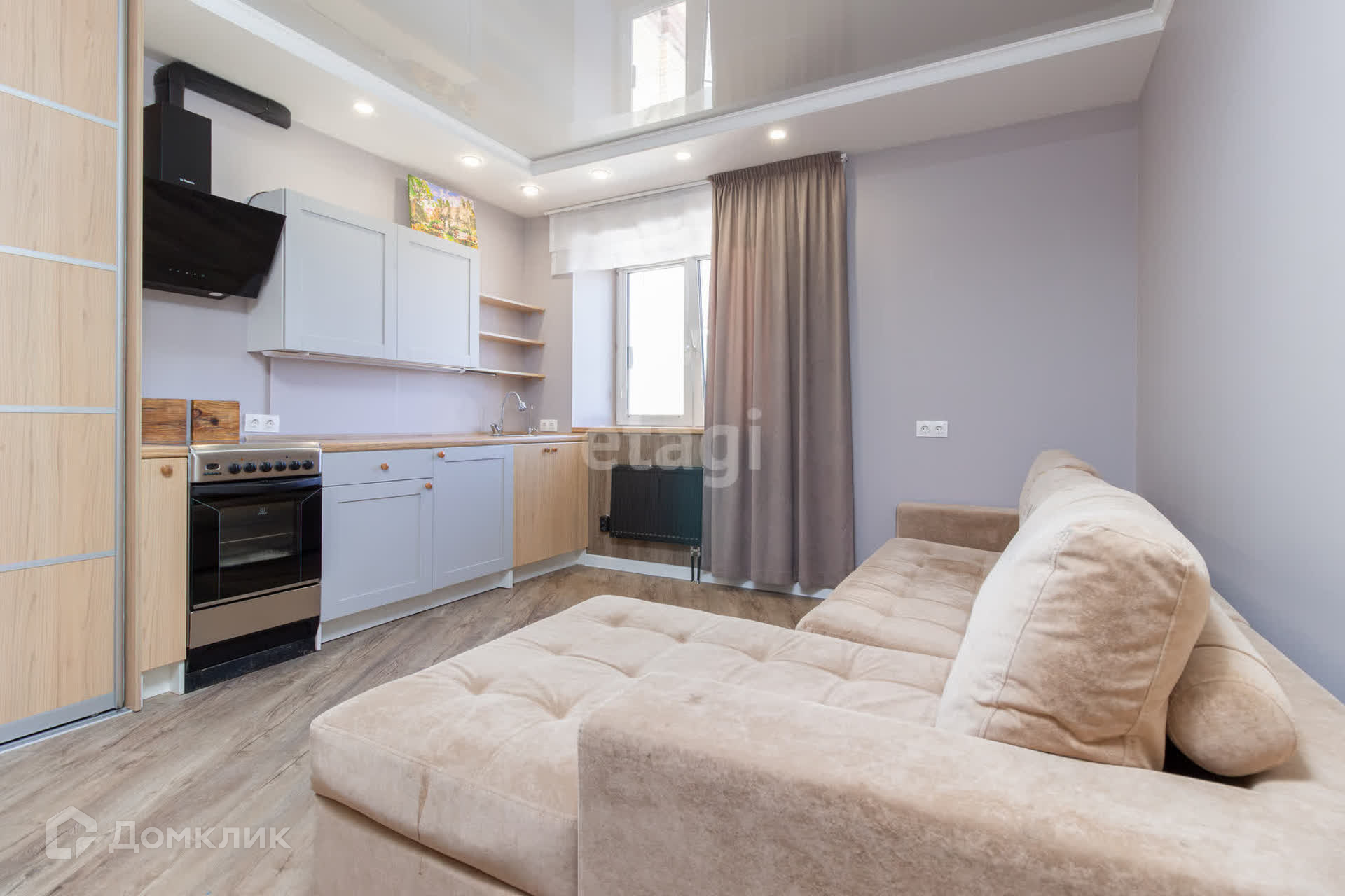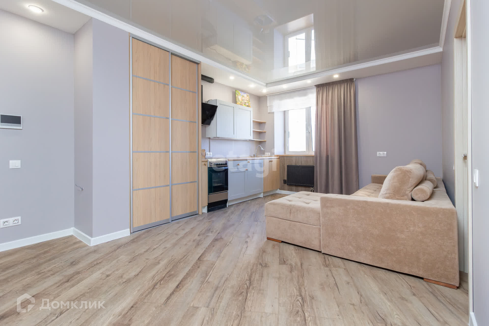 В квартире сделан качественный ремонт по дизайн проекту. Состояние заезжай и живи. В квартире остается все, что на фото: встроенная кухня, шкафы купе, диван, стиральная машинка и прочее.