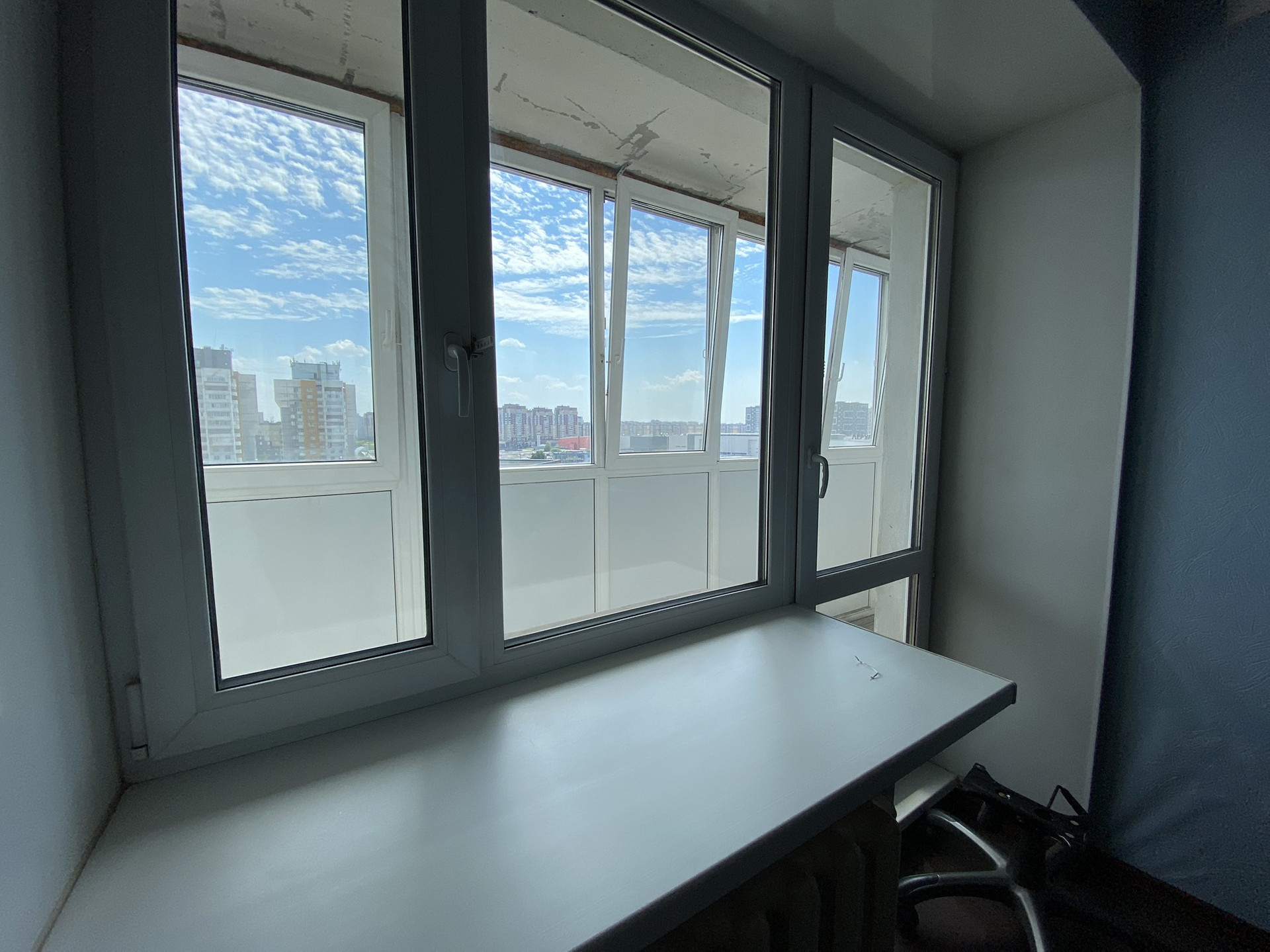 Большая лоджия - 3.2 м2, застеклённая, электрифицированная. При входе в квартиру есть тамбур.