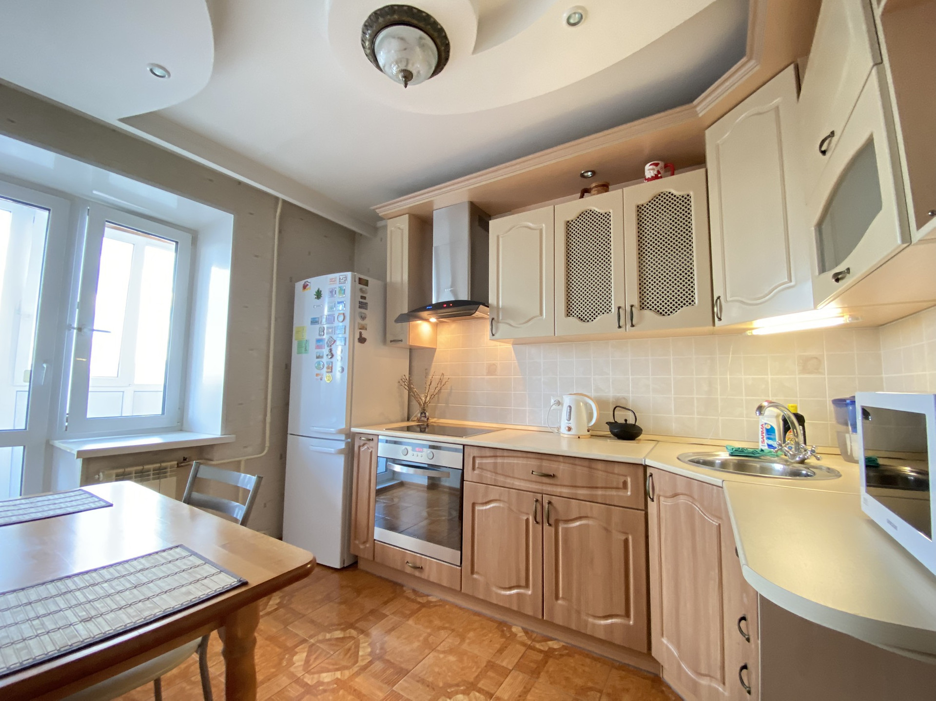 Актуальный ремонт. Стены и потолки выровнены, стяжка пола. Электропроводка медная, щиток в квартире. Продуманное расположение розеток и выключателей. Трубы металлопластиковые. Чугунная ванна 170 см.