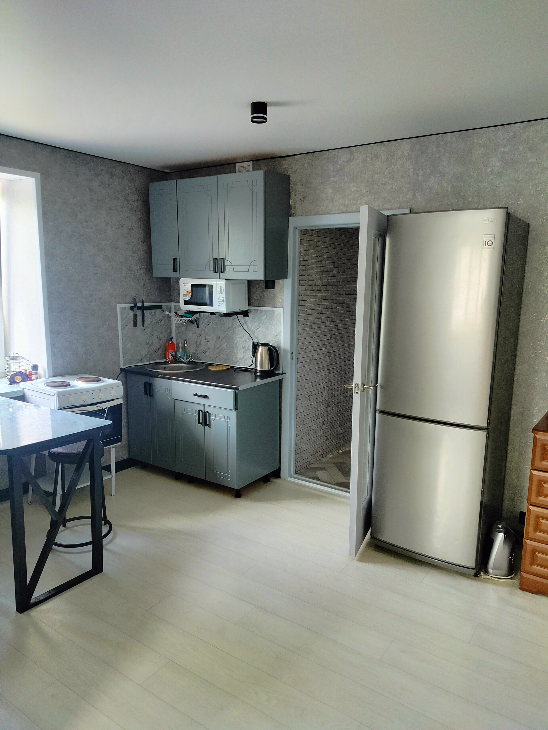 При продаже остается мебель:шкаф,кухонный гарнитур, стол, стулья. Торг...