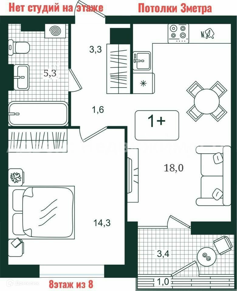 ID: 817316  **Великолепная квартира формата 1+ по цене ниже застройщика на 700 тыс. рублей!**