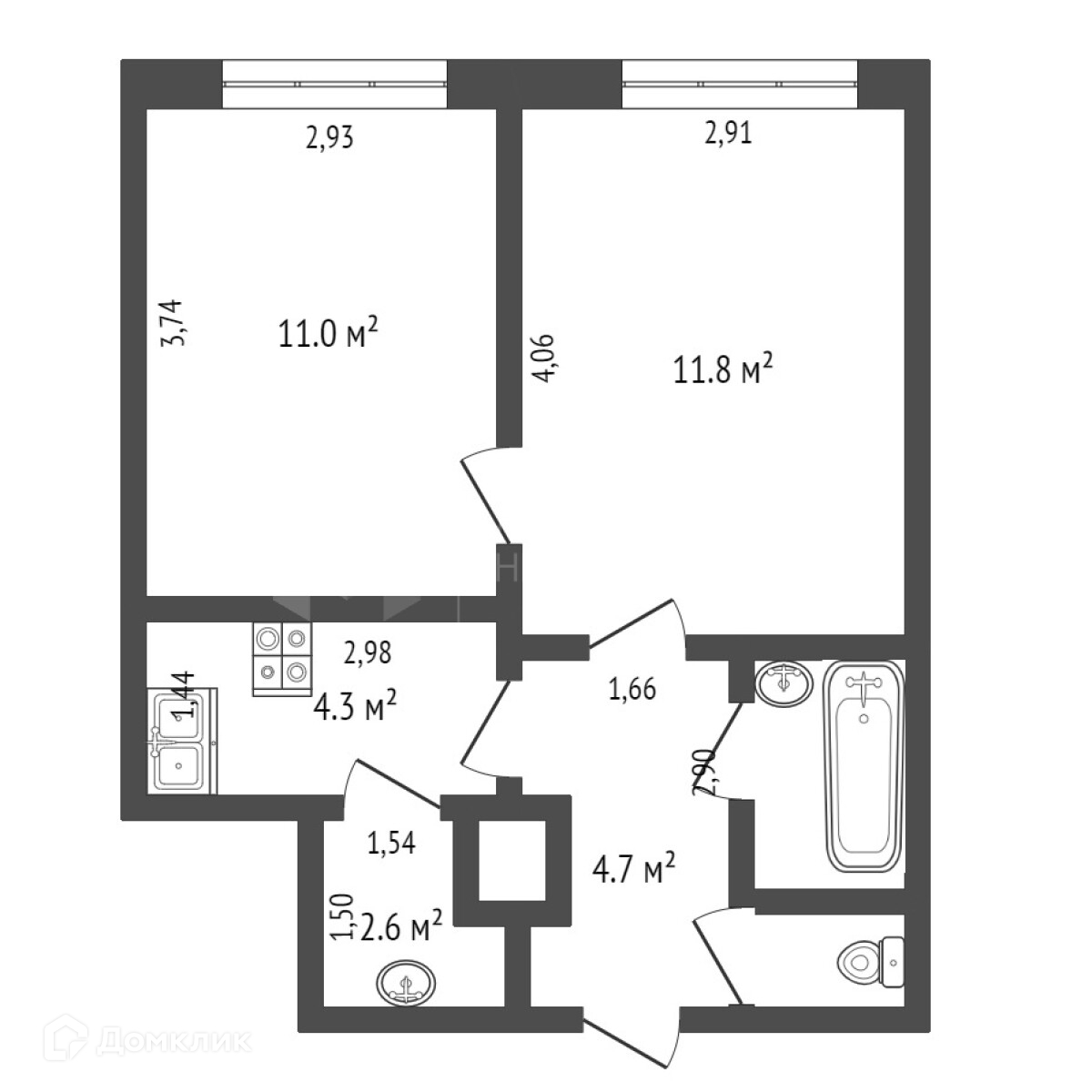 Общая площадь 37.4 м2