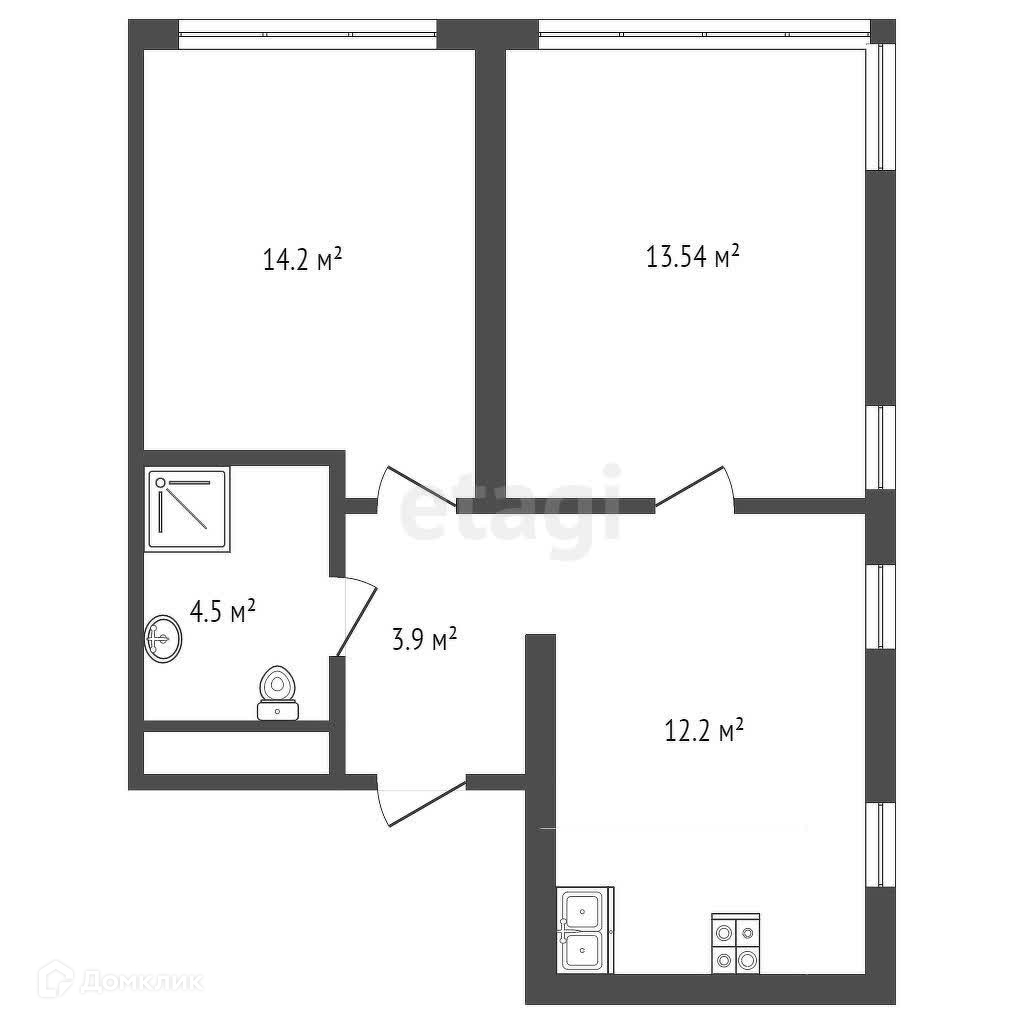 2-комнатная квартира, 45.9 м2, этаж 14 / 17, на продажу в Тюмени, улица Василия Малкова, 10
