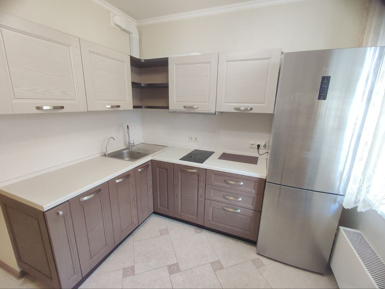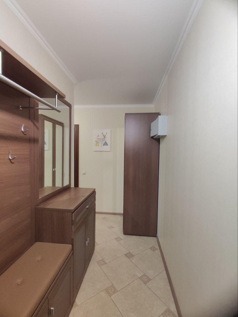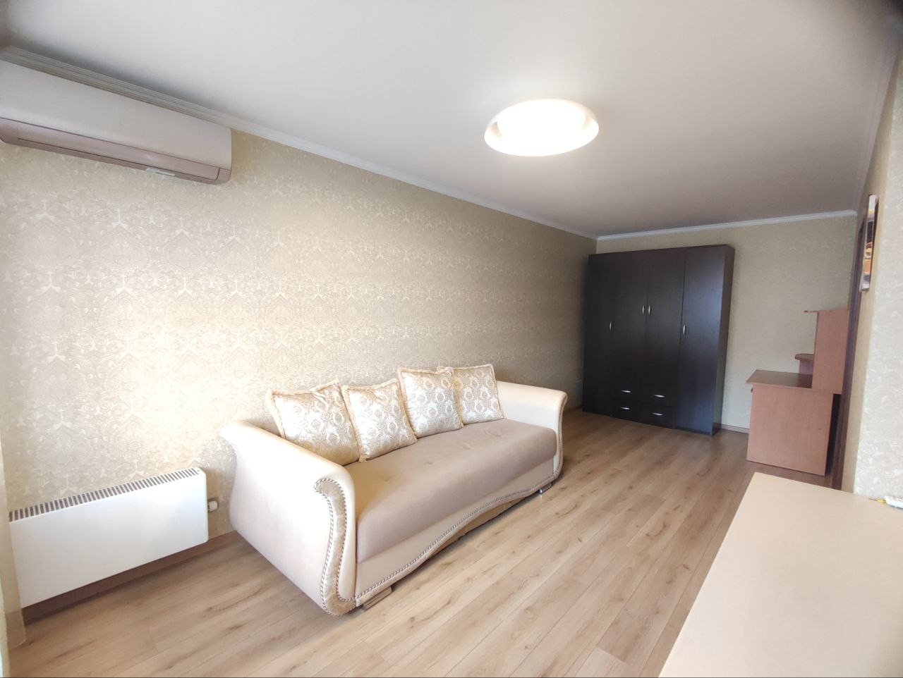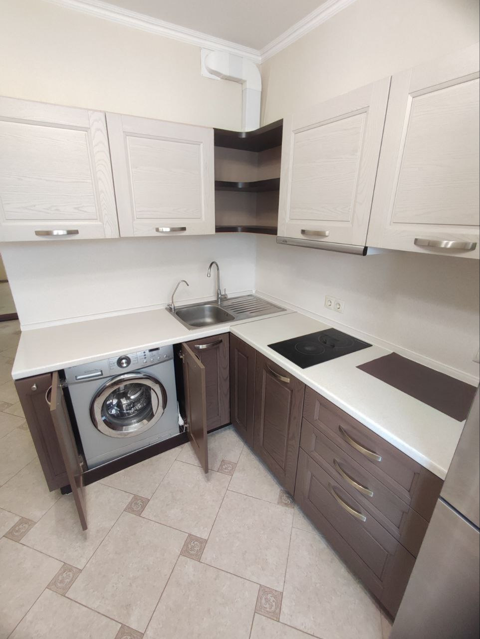 При продаже остается все что на фото (в том числе бытовая техника: холодильник, стиральная машинка автомат, варочная панель, вытяжка, кондиционер),  за исключением шкафа в комнате. Вам остаётся только занести свои личные вещи.