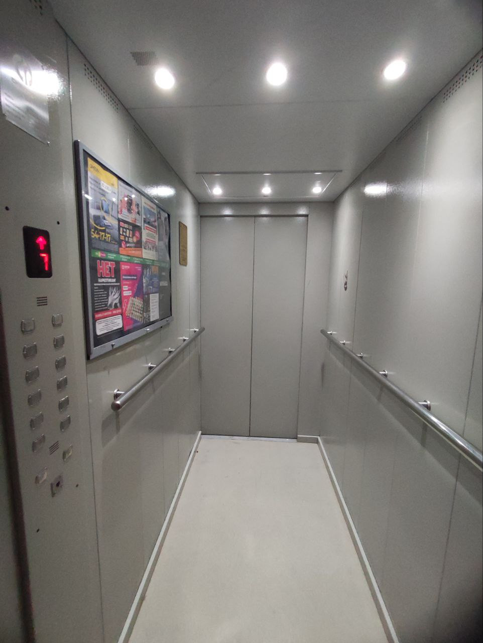 На площадке всего 5 квартир, подъезд чистый. Грузопассажирский лифт, сквозной. Очень удобный для мам с колясками.
