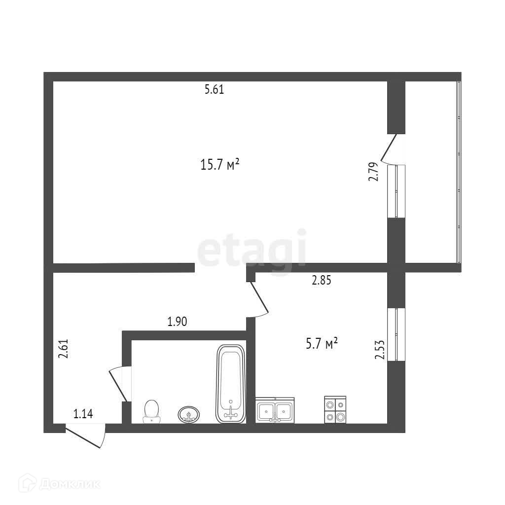 Площадь кухни 5.7 м2