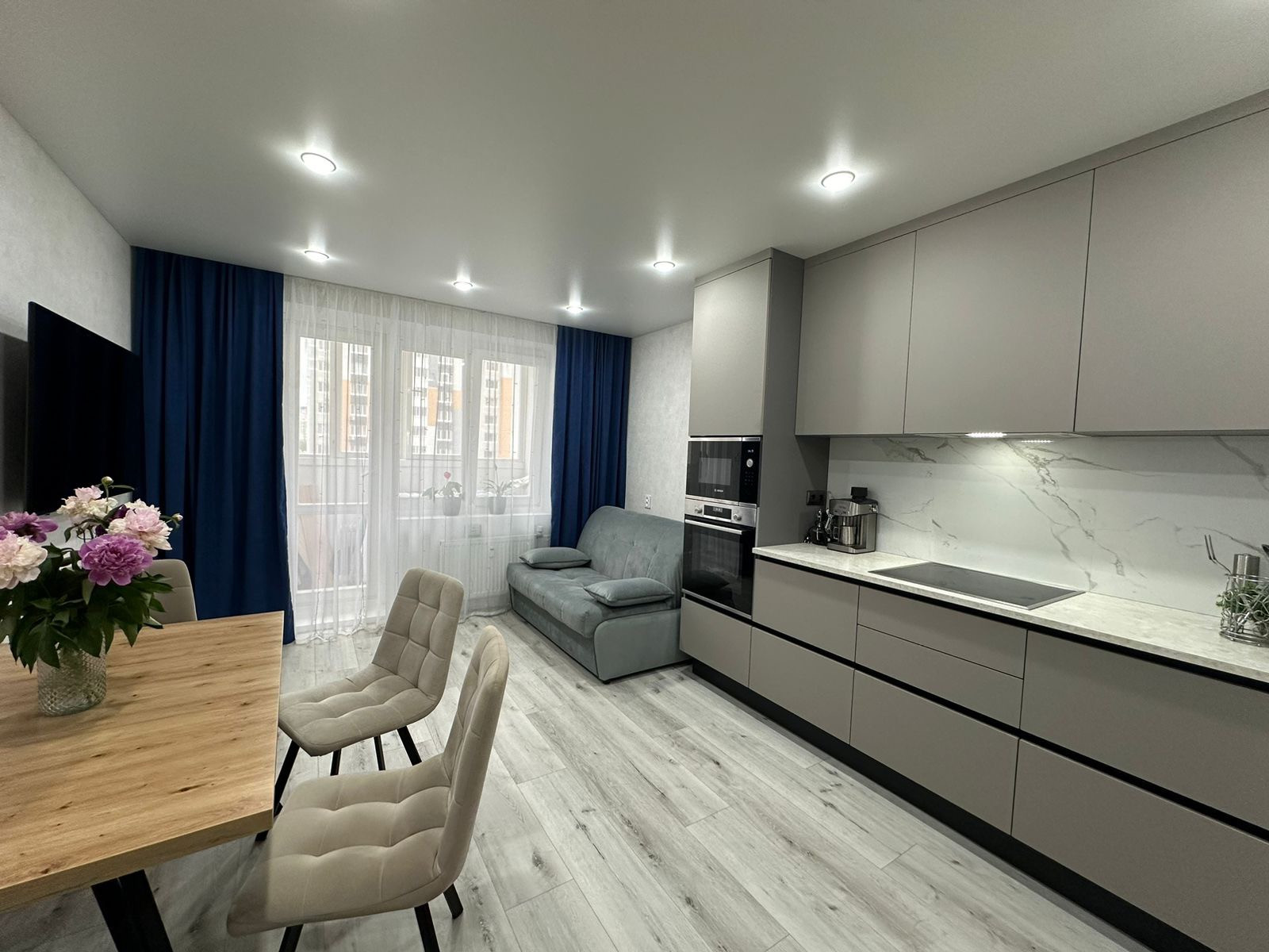 Новый дом (октябрь 2022 года постройки), отличный 3 этаж (удобно подниматься и спускаться, без привязки к лифту), новая современная школа, детские сады, паркинг, а также все в магазине в шаговой доступности. Отличная транспортная развязка. Возможность, с любого кольца выехать в любой конец города.