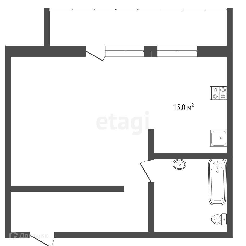 Квартира студия, 43.8 м2, этаж 4 / 10, на продажу в Тюмени, улица Елизарова, 6