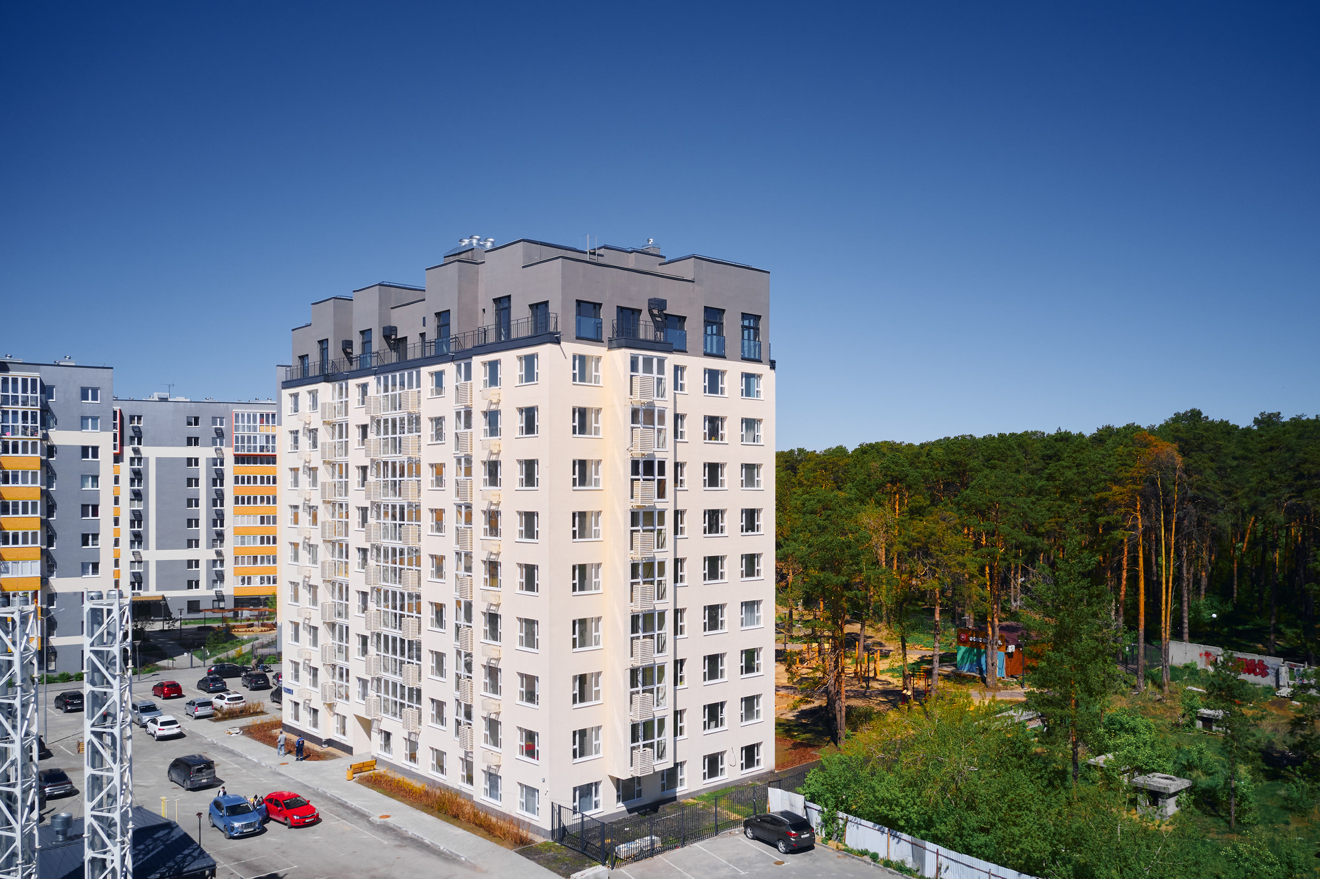 Для комфортной жизни во дворе дома предусмотрены детская и спортивная площадки. Для автомобилистов доступна охраняемая парковка. Безопасность жильцов обеспечивается закрытой территорией и кодовой дверью.