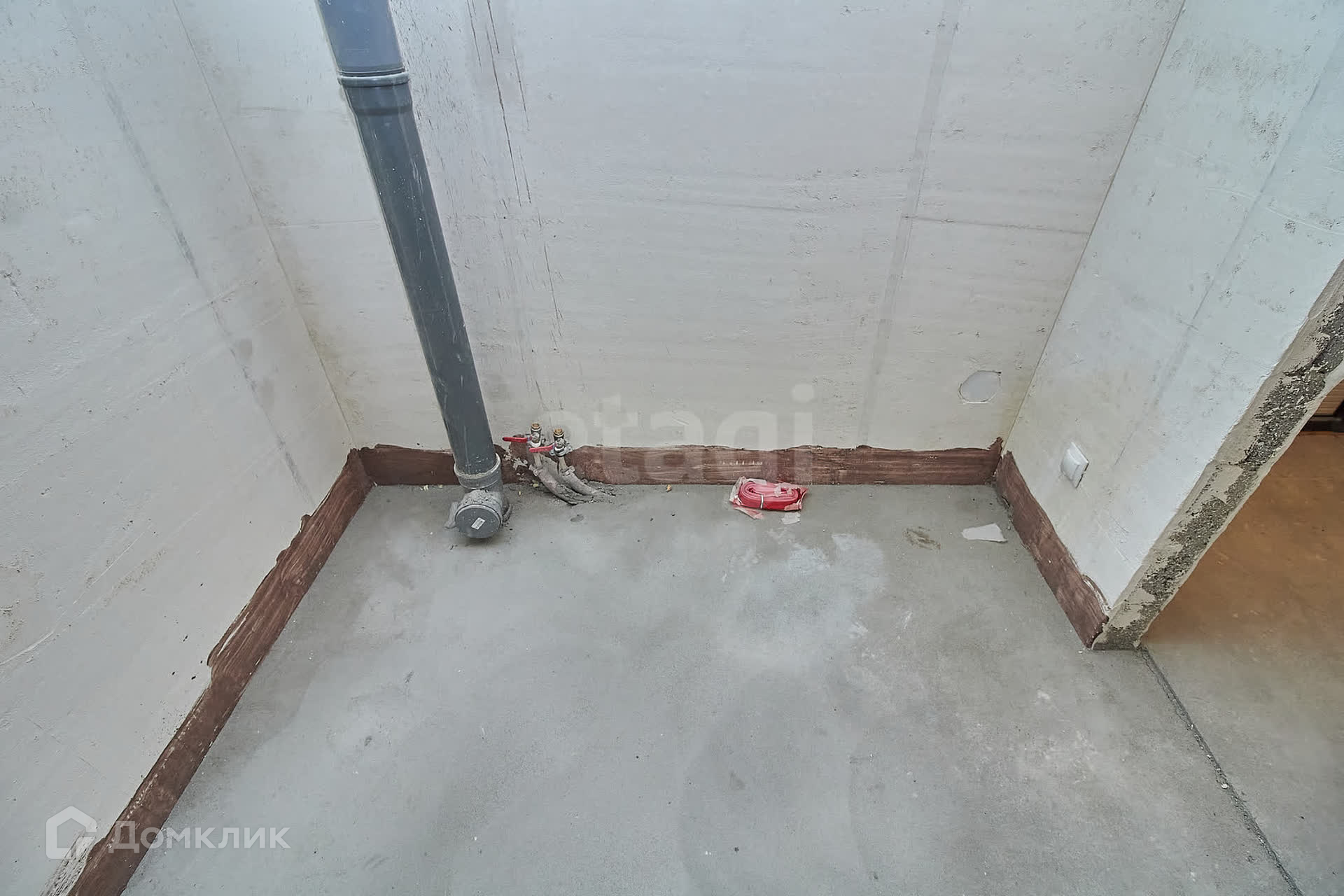Выполнена улучшенная черновая отделка: цементно-песчаная стяжка пола, стены выровнены, оштукатурены, установлены счетчики учета воды, электричества, розетки, выключатели.