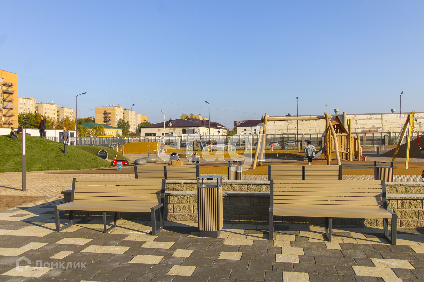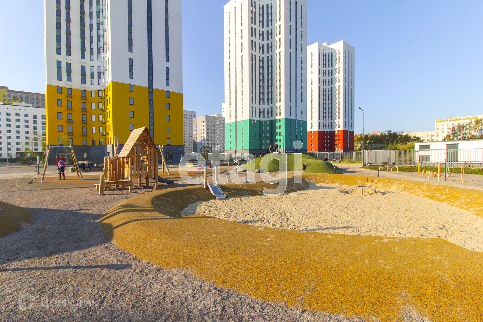 Двор без машин! Собственная пешеходная аллея - зеленый щит вдоль ул. Республики. Хоккейный корт, площадки для мини-футбола и баскетбола, велосипедные дорожки и современные безопасные детские площадки, зонированные по возрастам.