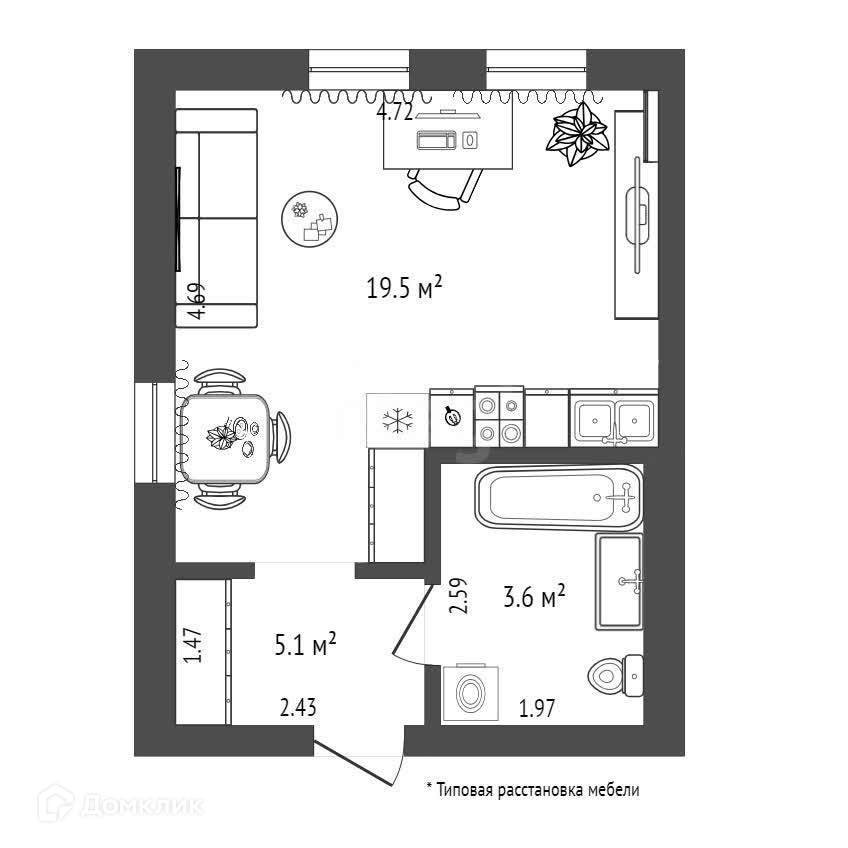 Общая площадь 28.2 м2