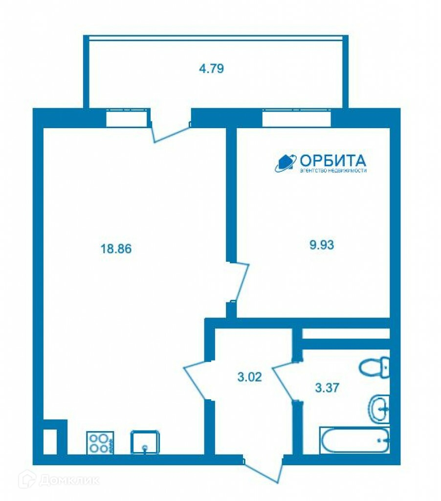 Общая площадь 34.5 м2
