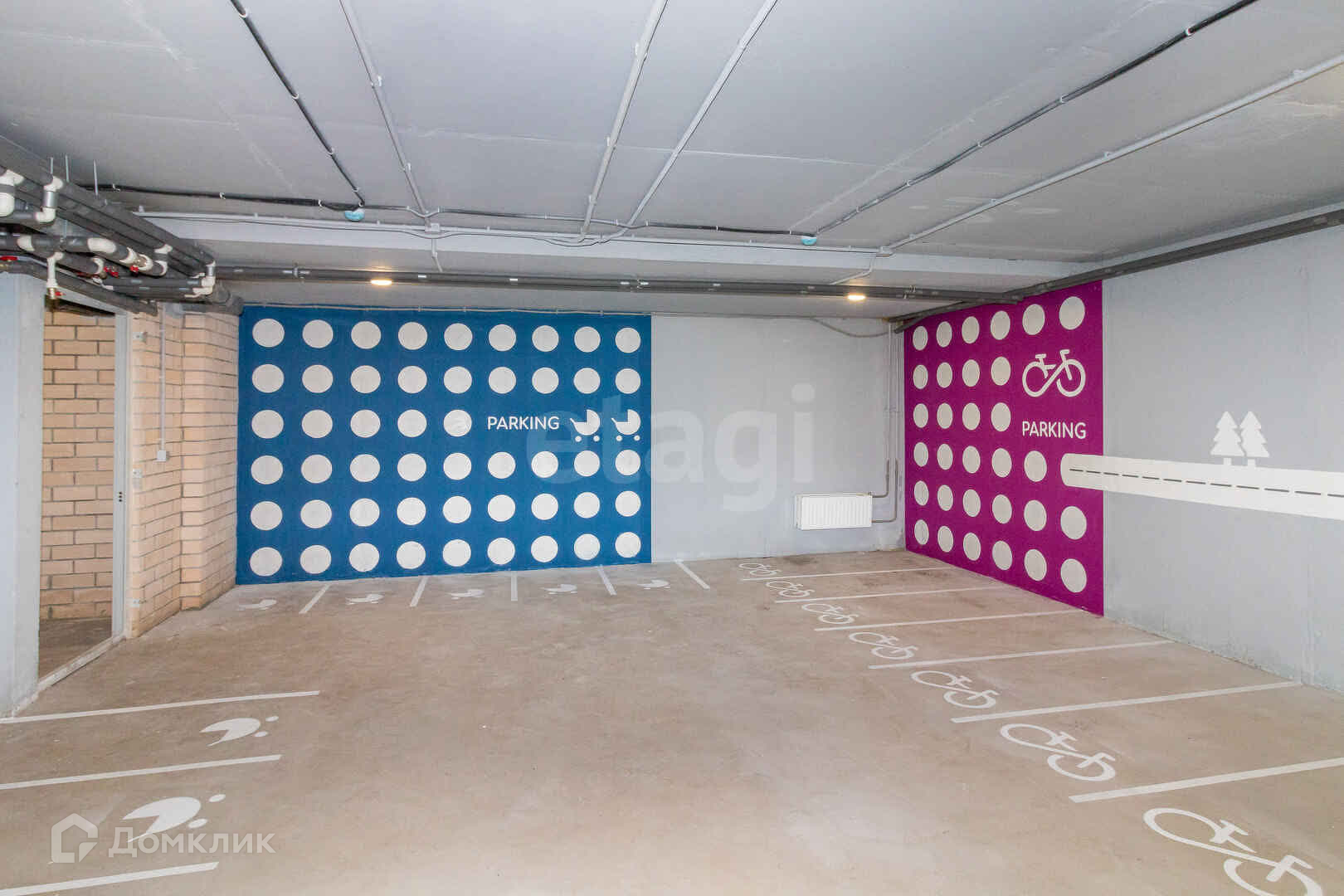 Сквозная входная группа с двумя домофонами (выходы во двор и к наземному паркингу). Достаточное количество парковочных мест (есть возможность приобрести кладовые на цокольном этаже).