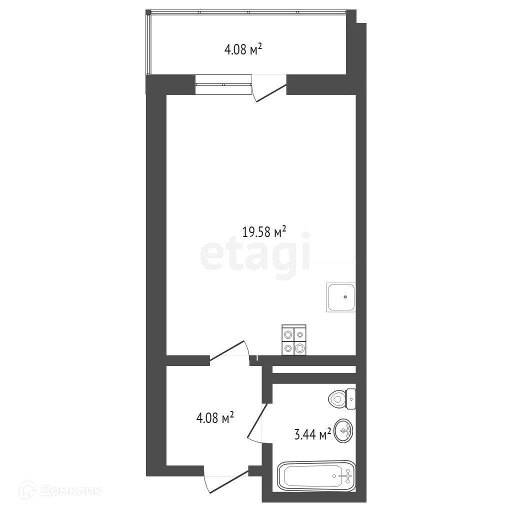 Квартира студия, 27 м2, этаж 3 / 9, на продажу в Тюмени, 2-я Луговая улица, 22к2