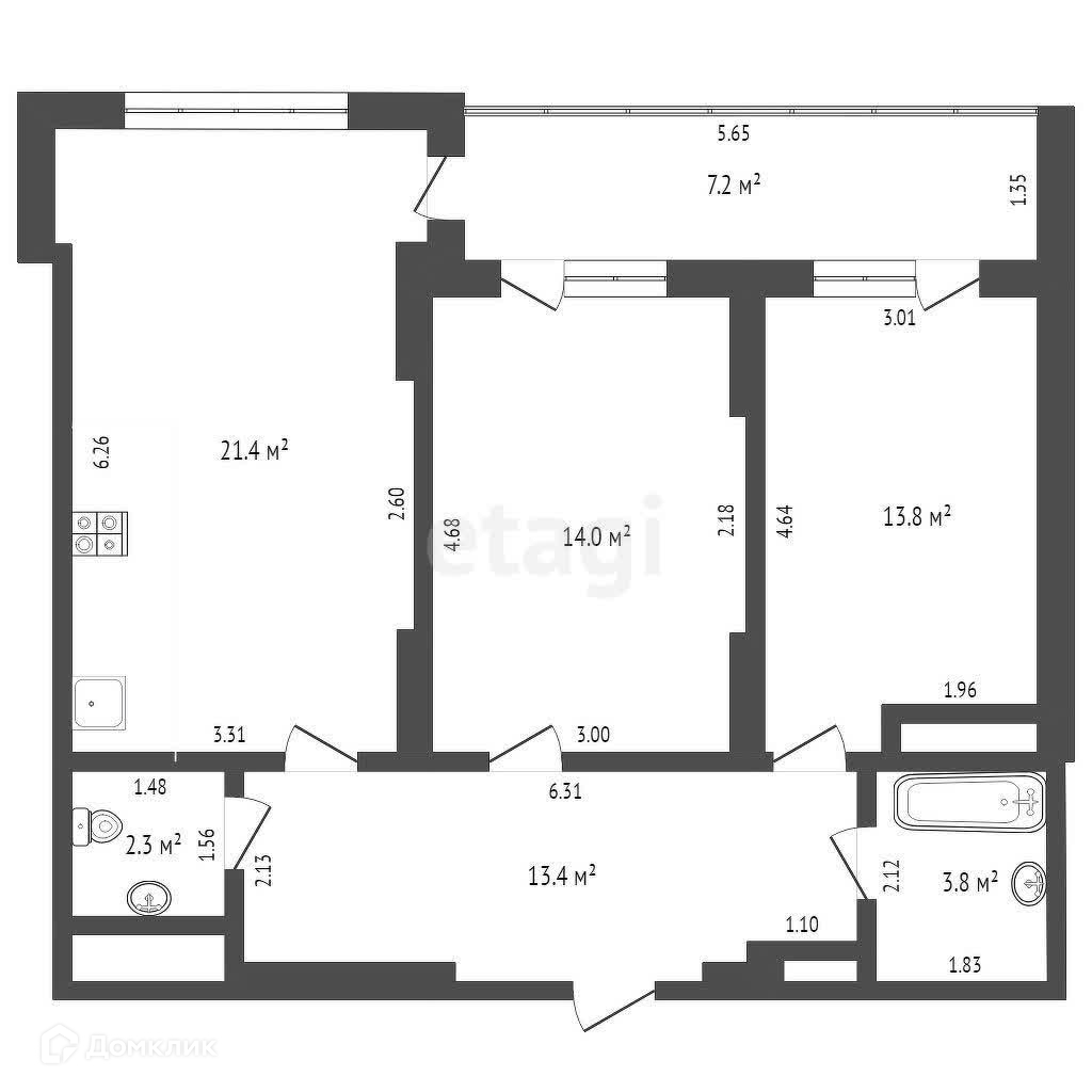 К продаже представлена просторная светлая квартира, формата 2+ В ЦЕНТРЕ Тюмени!