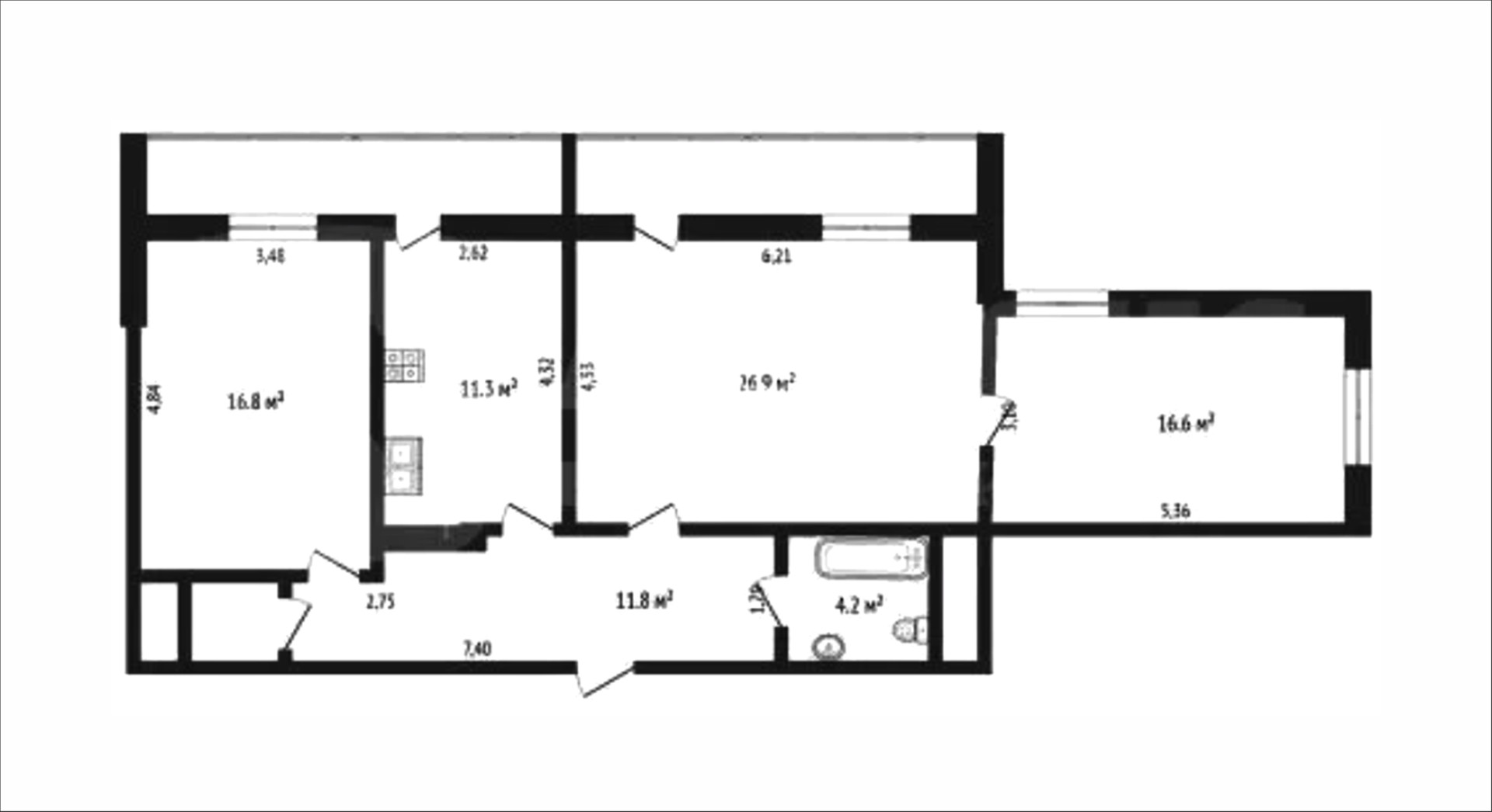 Жилая площадь 60.3 м2