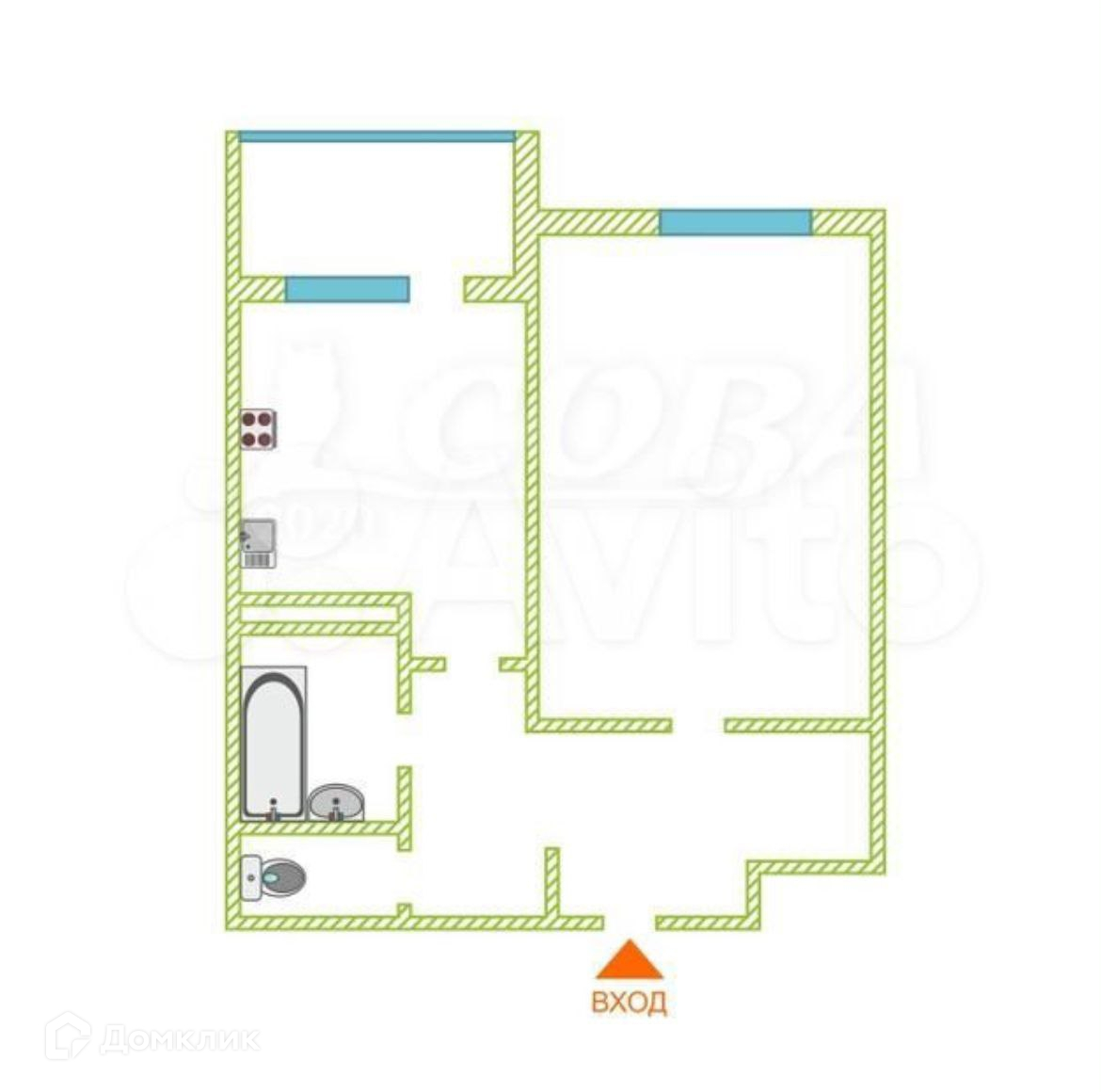 Общая площадь 36.6 м2