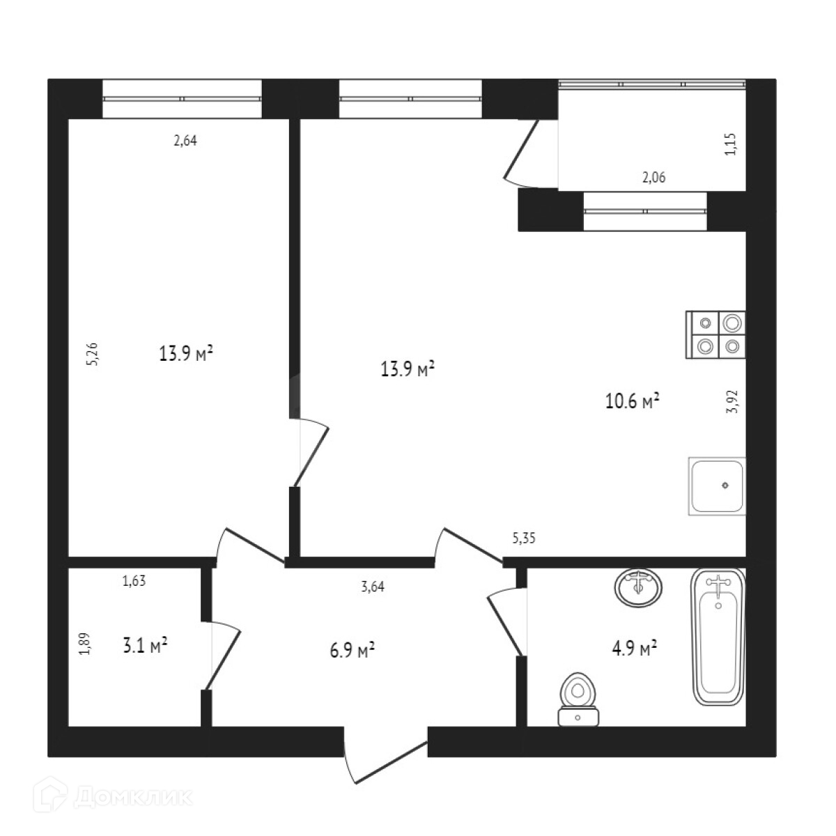 Жилая площадь 27.8 м2