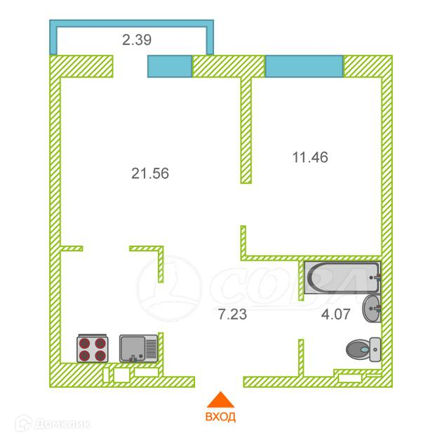 Общая площадь 44 м2