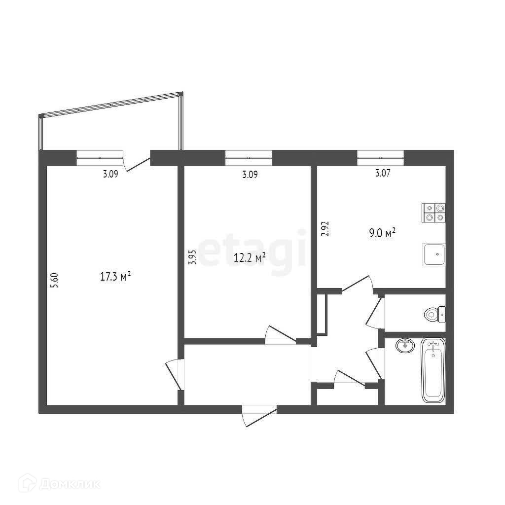 2-комнатная квартира, 50.5 м2, этаж 3 / 9, на продажу в Тюмени, улица Пермякова, 50
