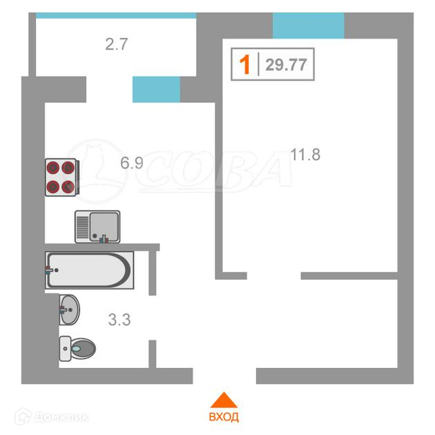 Общая площадь 32 м2