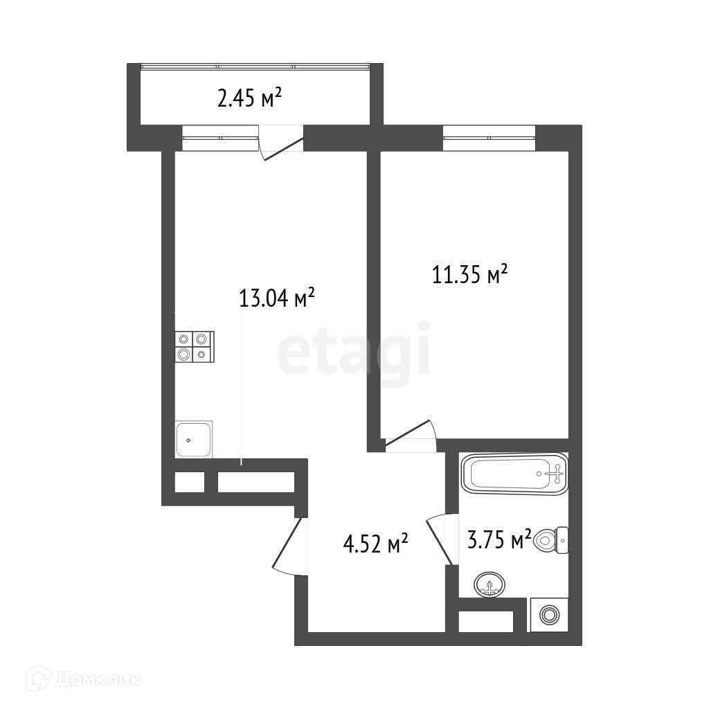 Продается отличная однокомнатная квартира площадью 32,66 кв.м.
