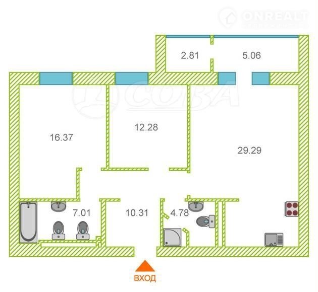 Площадь кухни 29.3 м2