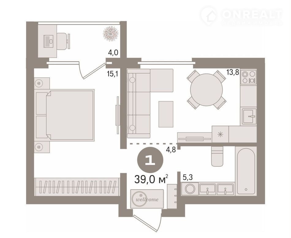 Общая площадь 39 м2