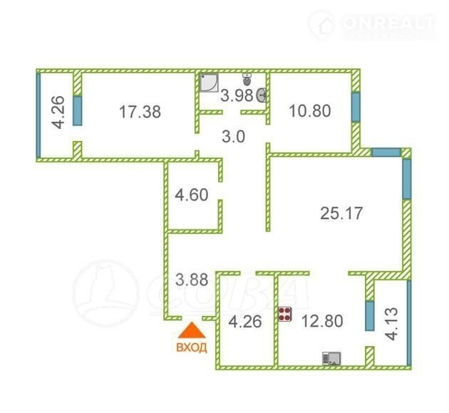 Общая площадь 90 м2