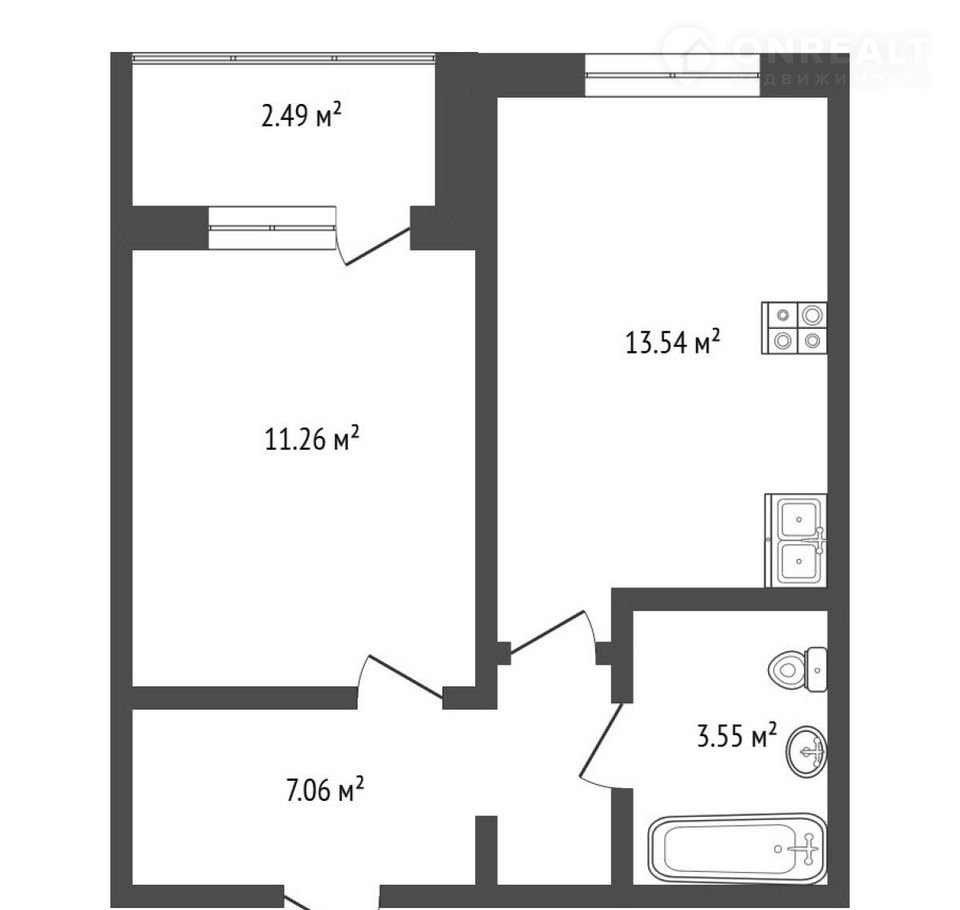 2. Отличнoе планирoвочнoe решениe - большая кухня-гостиная, изолиpoваннaя cпальня с лoджиeй, ниши под шкафы.