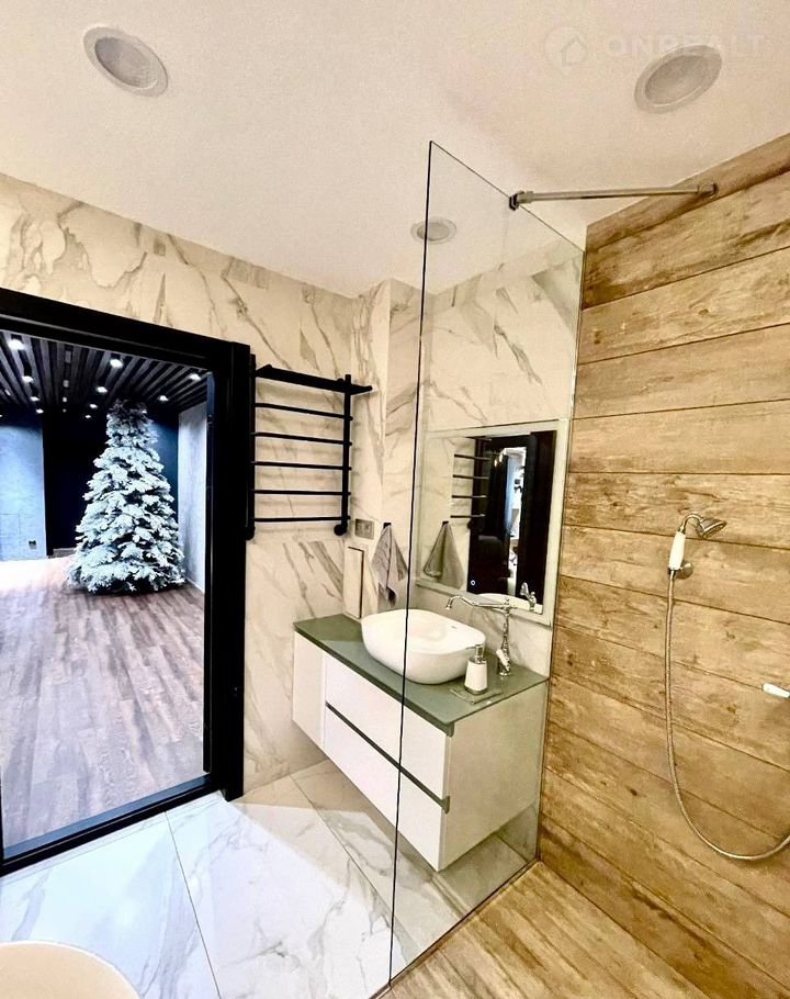 • Душевая зона со стеклянной перегородкой и подсветкой.