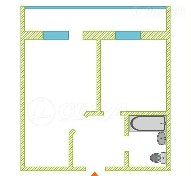 1-комнатная квартира, 39 м2, этаж 4 / 9, на продажу в Тюмени, улица Избышева, 8